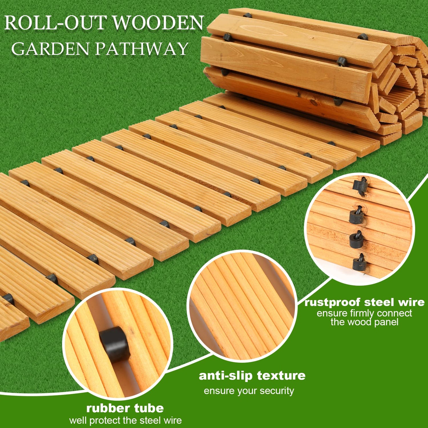 - 【Portable & Space Saving】This roll out wooden garden pathway can be rolled into a small size for easy carry out and storage. No need to unscrew, disassemble and rebuild.Just take it out when you need to use it and spread it out to add an ornament to your yard.