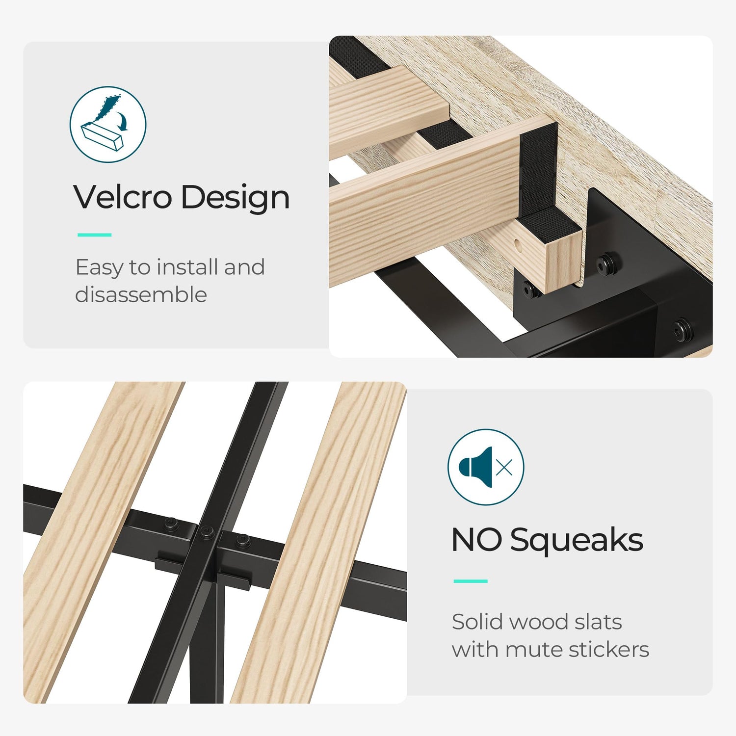 Enjoy a peaceful night's sleep with the silent stability offered by this innovative design. The embedded structure ensures your mattress remains in place, while non-slip tape on the wooden slats provides added security against movement and noise. Say goodbye to unwanted disruptions and hello to serenity.