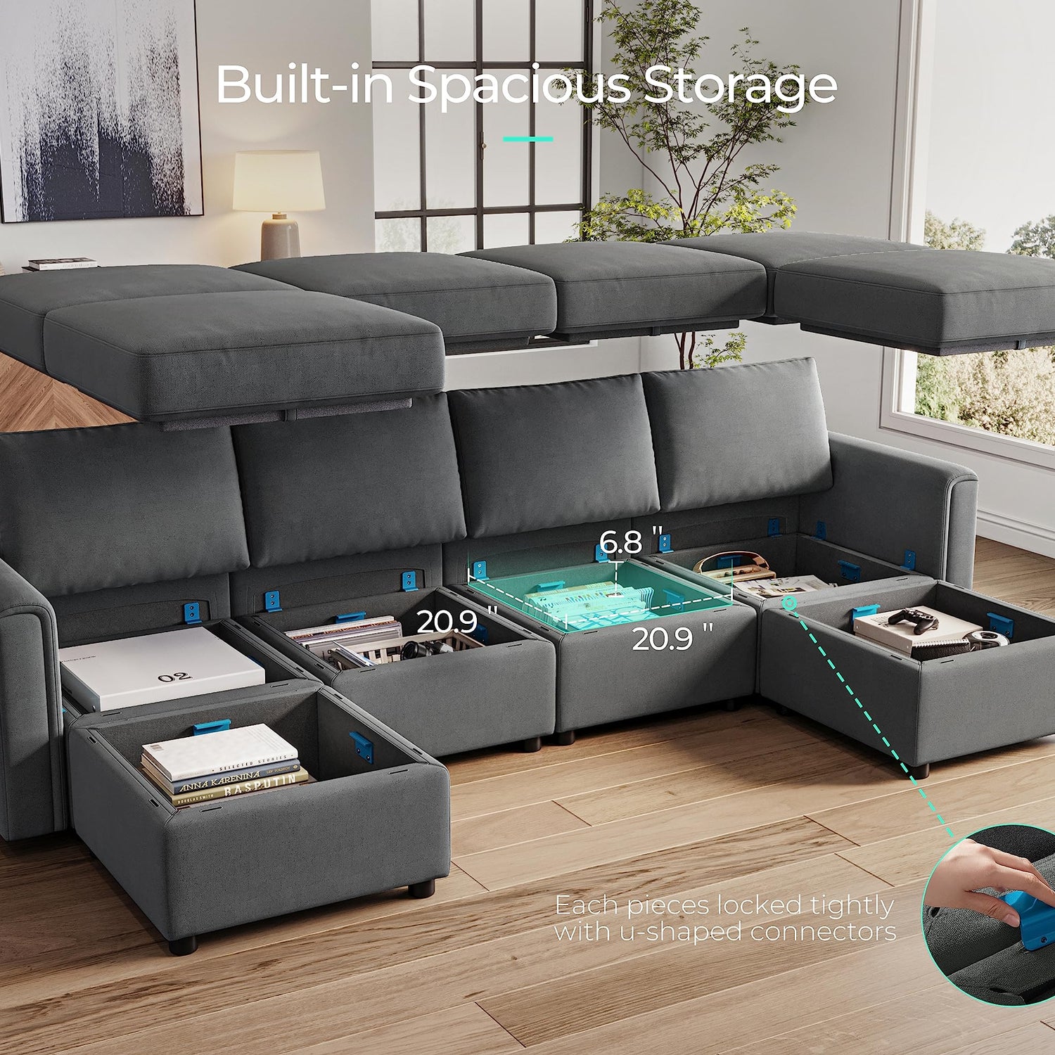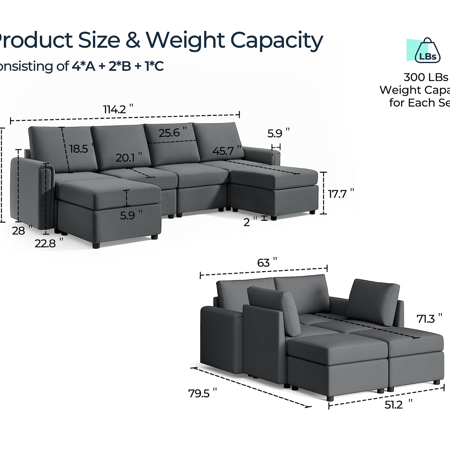 - 【SEVEN Packages】 The maximum capacity of each sofa modular piece is 300lbs. The sofa with storage comes with 7 boxes, which may be delivered at different times. If you have any questions about the tracking numbers or the product, please feel free to contact us. We will respond to you in 24 hours and try our best to solve any problem so as to achieve your 100% satisfaction