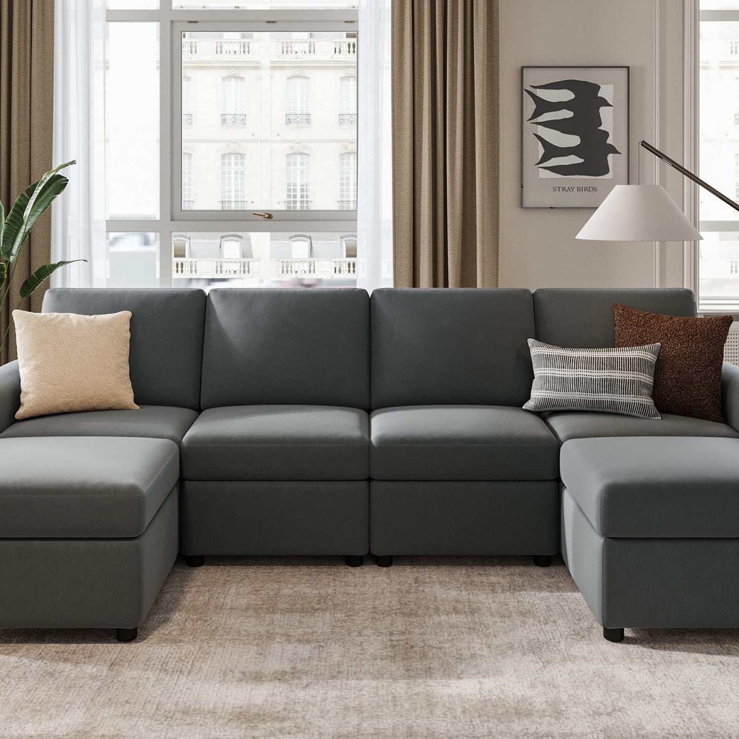 LINSY HOME Modular Sectional Sofa, Convertible U Shaped Sofa Couch with Storage, Memory Foam, Modular Sectionals with Ottomans, 6 Seat Sofa Couch with Chaise for Living Room, Dark Grey