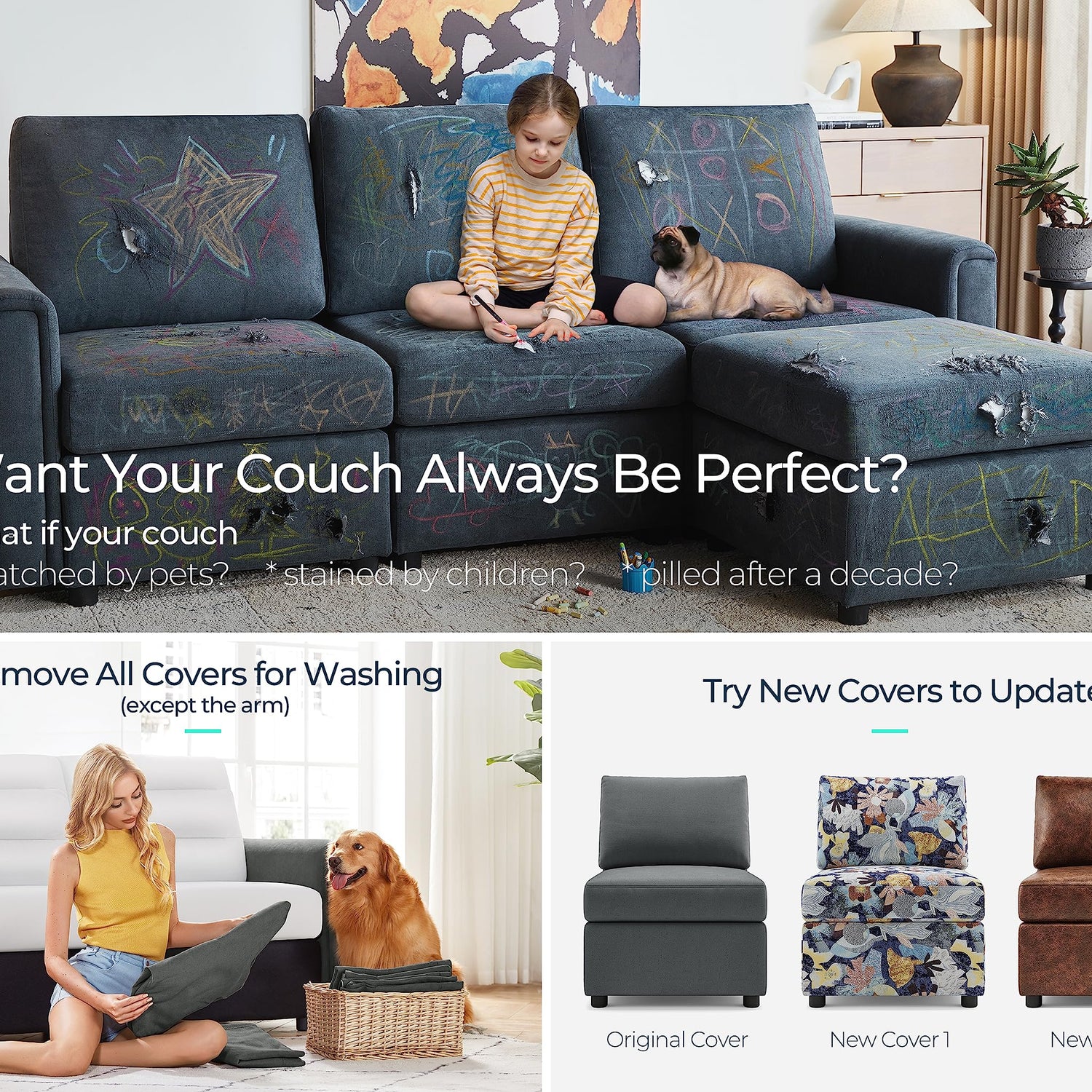 - 【Changeable Covers & Easily Reinvent Sofa Look】 Imagine if your couch covers are scratched by pets or stained by children, or you get tired of the old color in the future, you will prefer a sofa with changeable covers. LINSY HOME modular sofa gives you the freedom to reinvent your couch anytime with removable, changeable, and machine-washable covers(except the armrest). Please note: For more cover options please contact our customer service