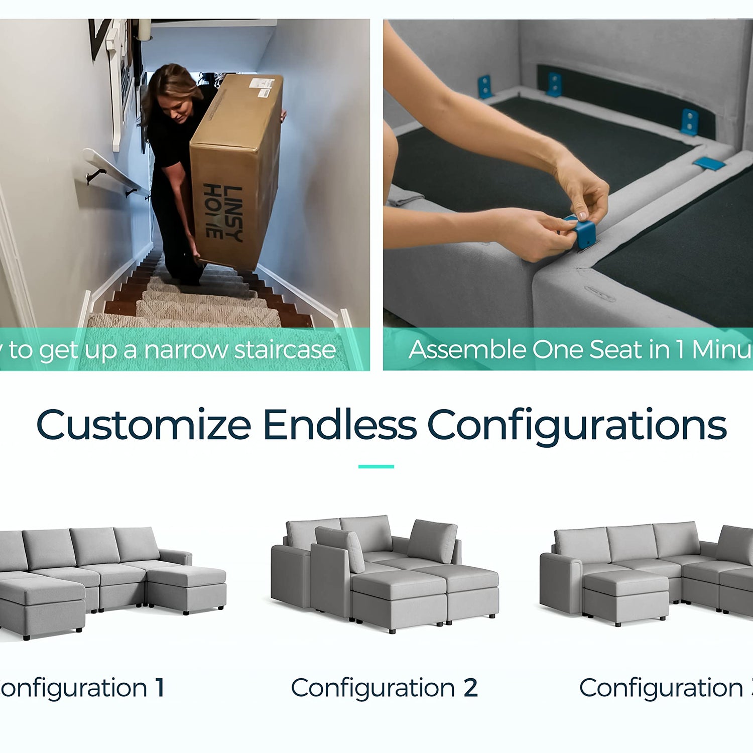 - 【Versatile & Flexible Modular Sofa】 - LINSY HOME Modular couches allow different households to customize various configurations such as a typical L or U shape couch, and update the colors and materials of your sectional sofa covers. It is easy to change a normal sofa into a corner sofa or sectional sleeper sofa bed in minutes. The more you add, the greater opportunity that you get to bend and shape your life at your command