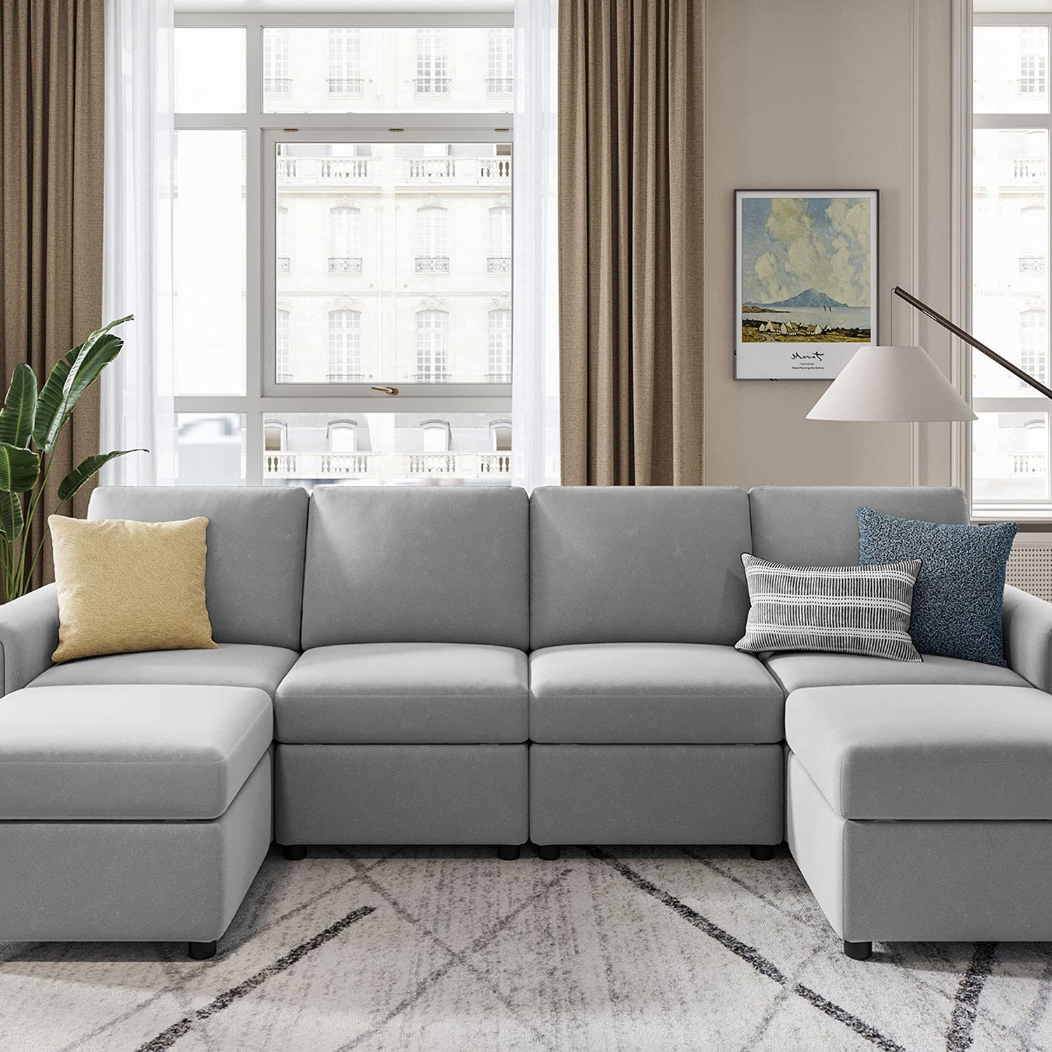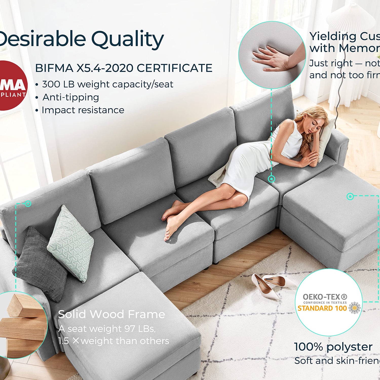 LINSY HOME Modular Sectional Sofa, Convertible U Shaped Sofa Couch with Storage, Memory Foam, Modular Sectionals with Ottomans, 6 Seat Sofa Set with Chaise for Living Room, Grey