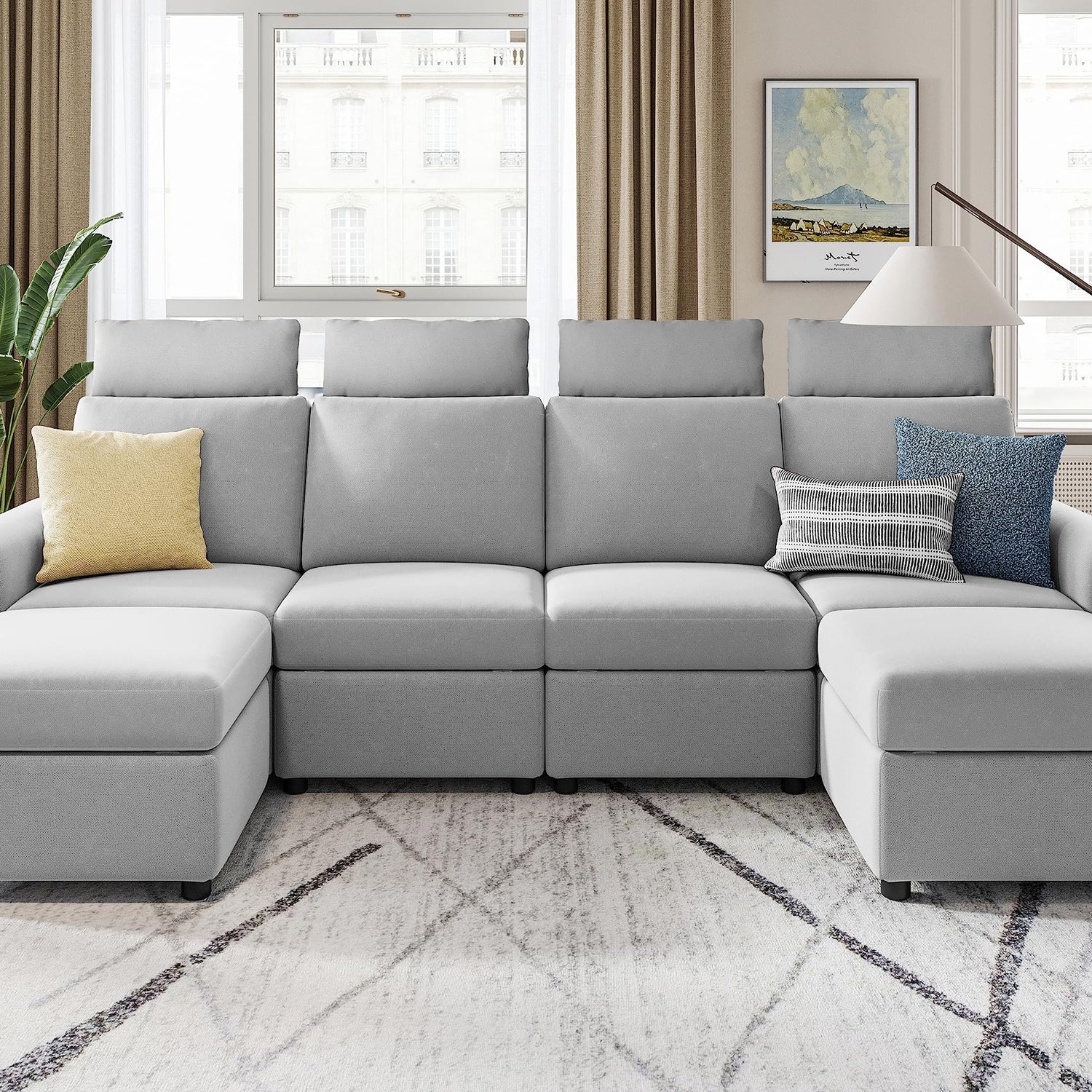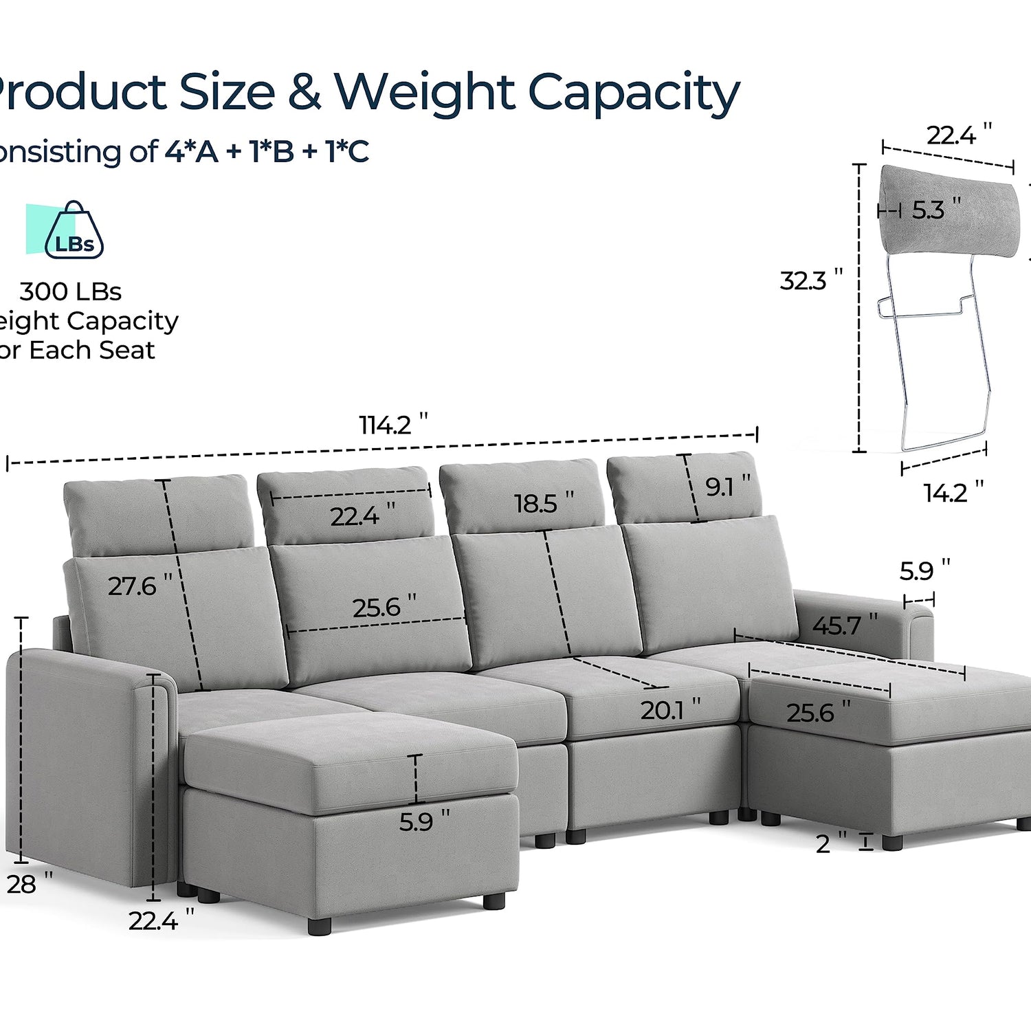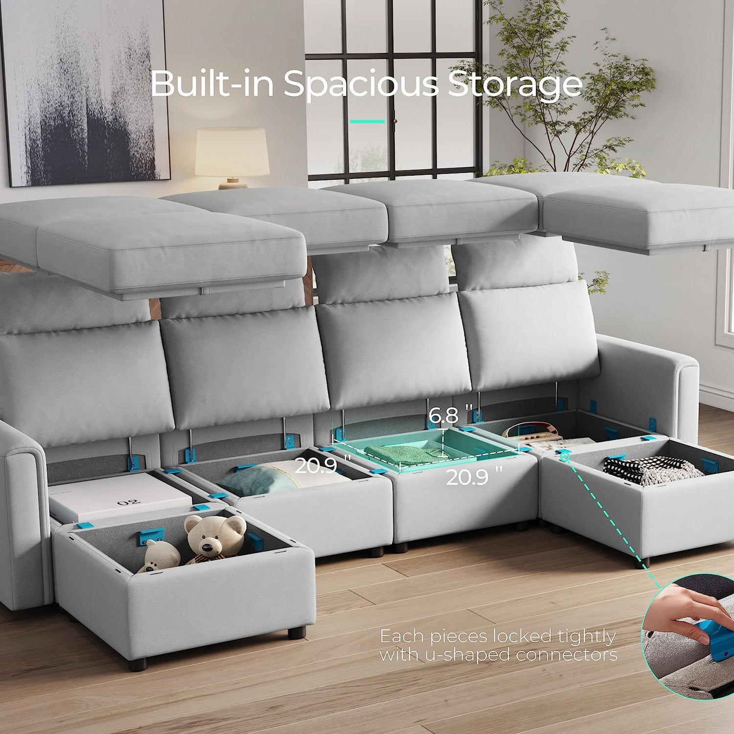 LINSY HOME Modular Sectional Sofa, Upgraded High Back Sectional Couch with 4 Headrests, U Shaped Sleeper Sofa with Storage, Sofa Covers Removable, 6 Seat Couch with Ottoman for Living Room, Grey