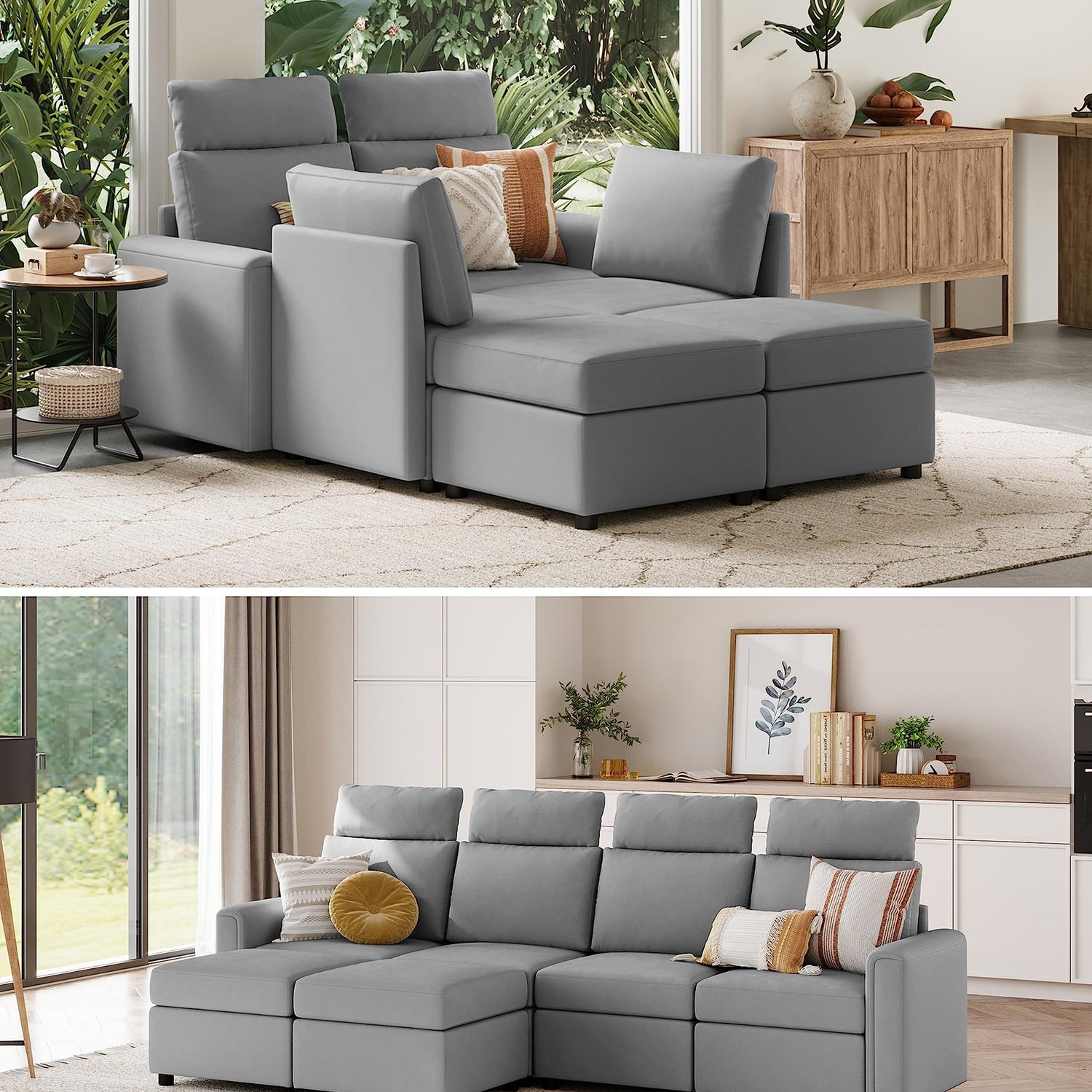 • 【NINE Packages】 The maximum capacity of each sofa modular piece is 300lbs. The sofa with storage comes with 8 boxes, which may be delivered at different times. If you have any questions about the tracking numbers or the product, please feel free to contact us. We will respond to you in 24 hours and try our best to solve any problem so as to achieve your 100% satisfaction