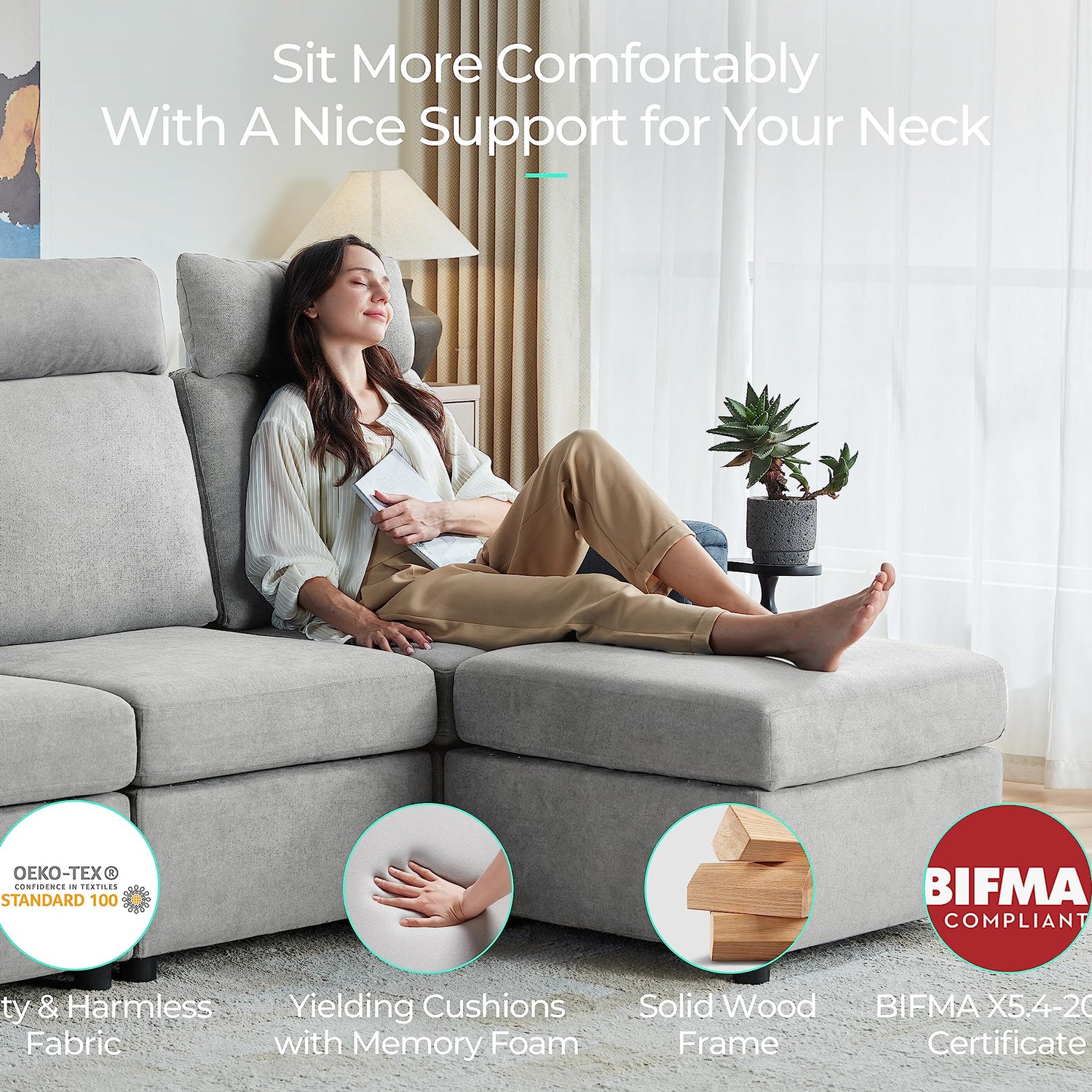 • 【Enhanced Comfort with Adjustable Headrest】 - Introducing our upgraded version of the LINSY HOME modular sectional sofa, now featuring an added adjustable headrest for superior back support and customized comfort. High-back sofa provides excellent support for the upper back, neck, and head, allowing you to sit comfortably for extended periods. The tall backrest helps maintain proper posture and reduces strain on the spine