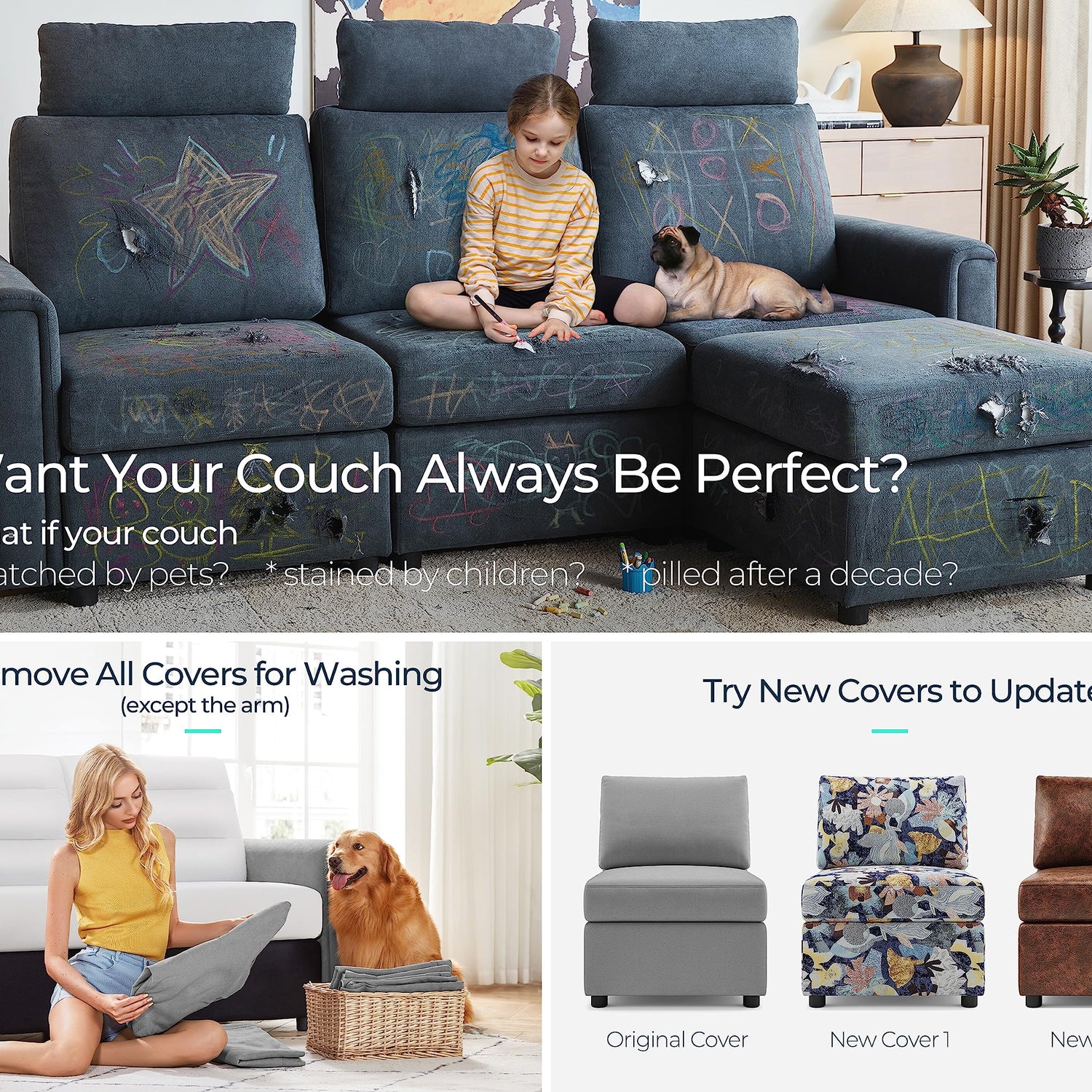 • 【Changeable Covers for Style Adaptability】 - We understand the need for flexibility when it comes to your sofa's appearance. Our modular sofa offers the freedom to reinvent its look anytime with easily removable, changeable, and machine-washable covers (excluding the armrest). Whether you want to refresh the color or replace worn-out covers, our sectional couch allows you to effortlessly update its style. For more cover options, please contact our customer service