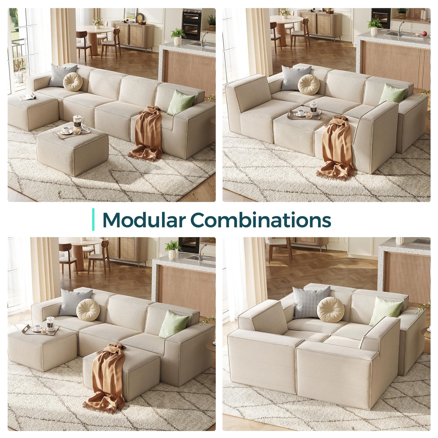 - Luxurious, Wrinkle-Resistant Corduroy - Wrapped in premium, wrinkle-resistant corduroy, this modular sectional couch combines soft, luxurious comfort with durability. The fabric feels smooth to the touch and resists wear, keeping your sofa looking and feeling fresh over time