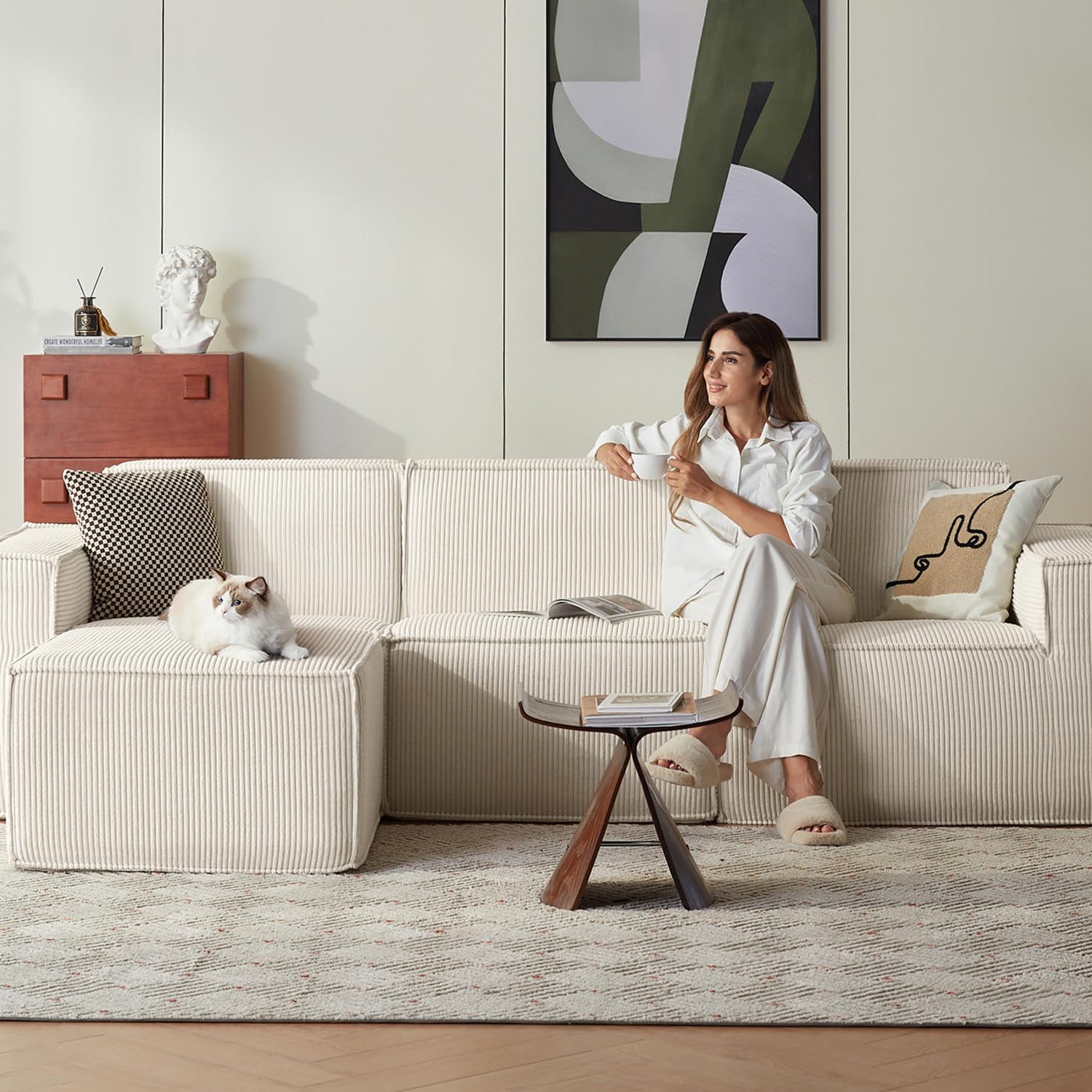 - Luxurious, Wrinkle-Resistant Corduroy - Wrapped in premium, wrinkle-resistant corduroy, this modular sectional couch combines soft, luxurious comfort with durability. The fabric feels smooth to the touch and resists wear, keeping your sofa looking and feeling fresh over time