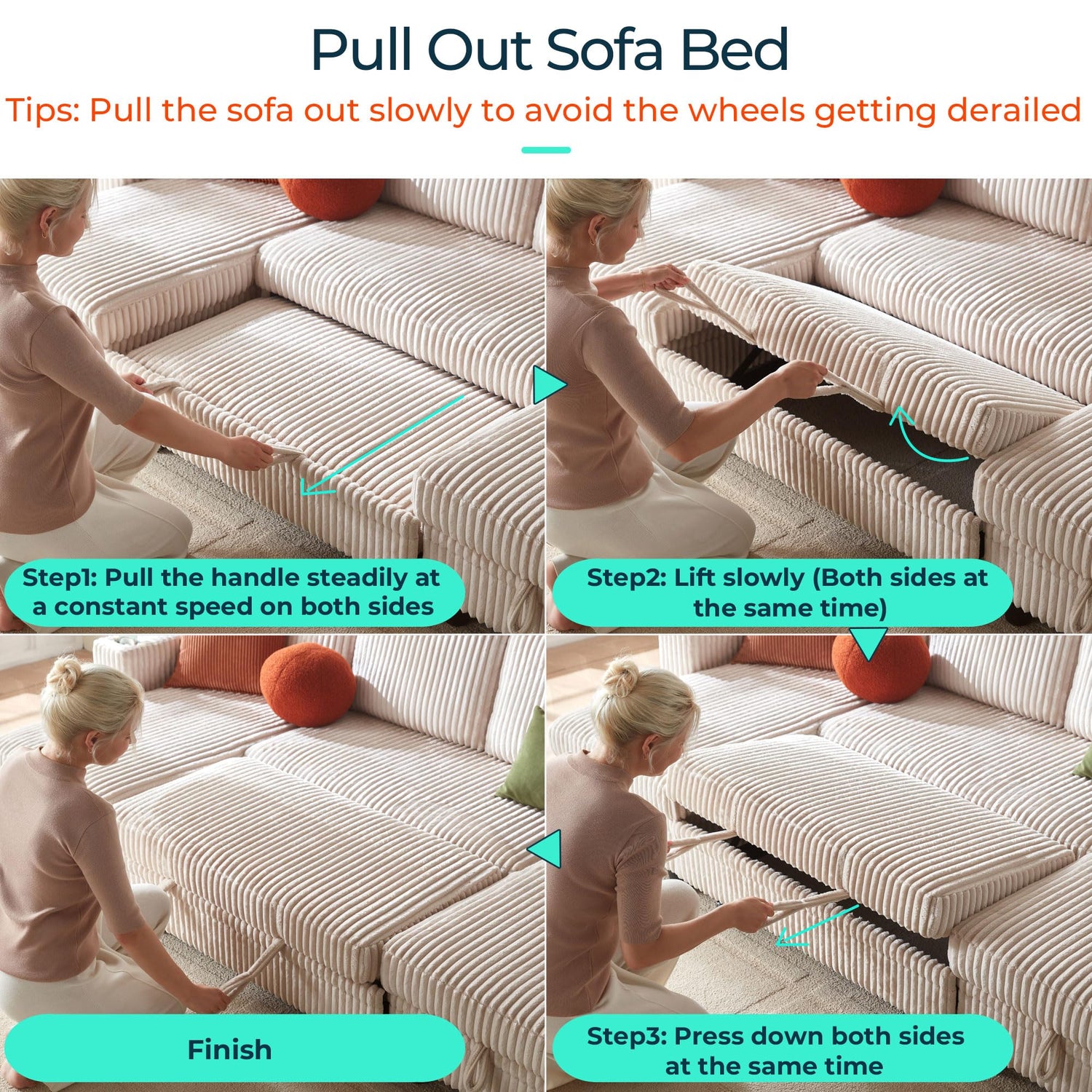 - Comfy Plush Corduroy Fabric: The sleeper sofa is made of high quality plush corduroy fabric, cloud-like softness, comfortable and breathable, the surface of the pile is rich and delicate and soft, its unique texture adds texture to the sofa bed, luxurious, practical and easy to clean, it still maintains a neat appearance after long term use, perfect for families, pets and daily use