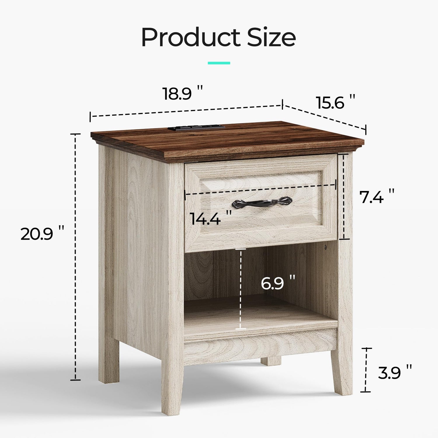 - Farmhouse Nightstand with Type-C Charger : This nightstands features 2 power outlets, 1 Type-C port, and 1 USB port, providing ultimate convenience for charging your electronic devices. Keep your gadgets fully powered and within easy reach, making your everyday life more efficient.
