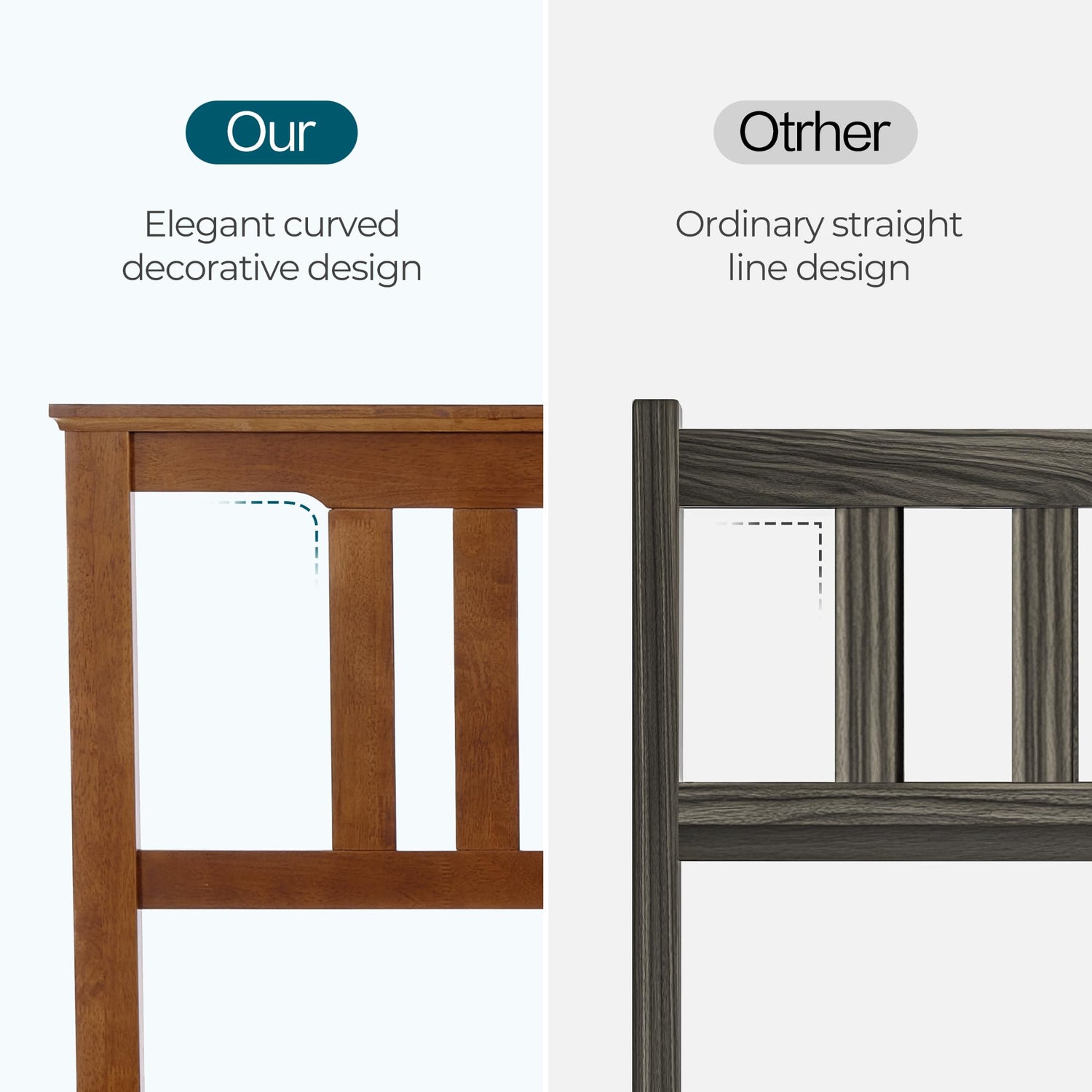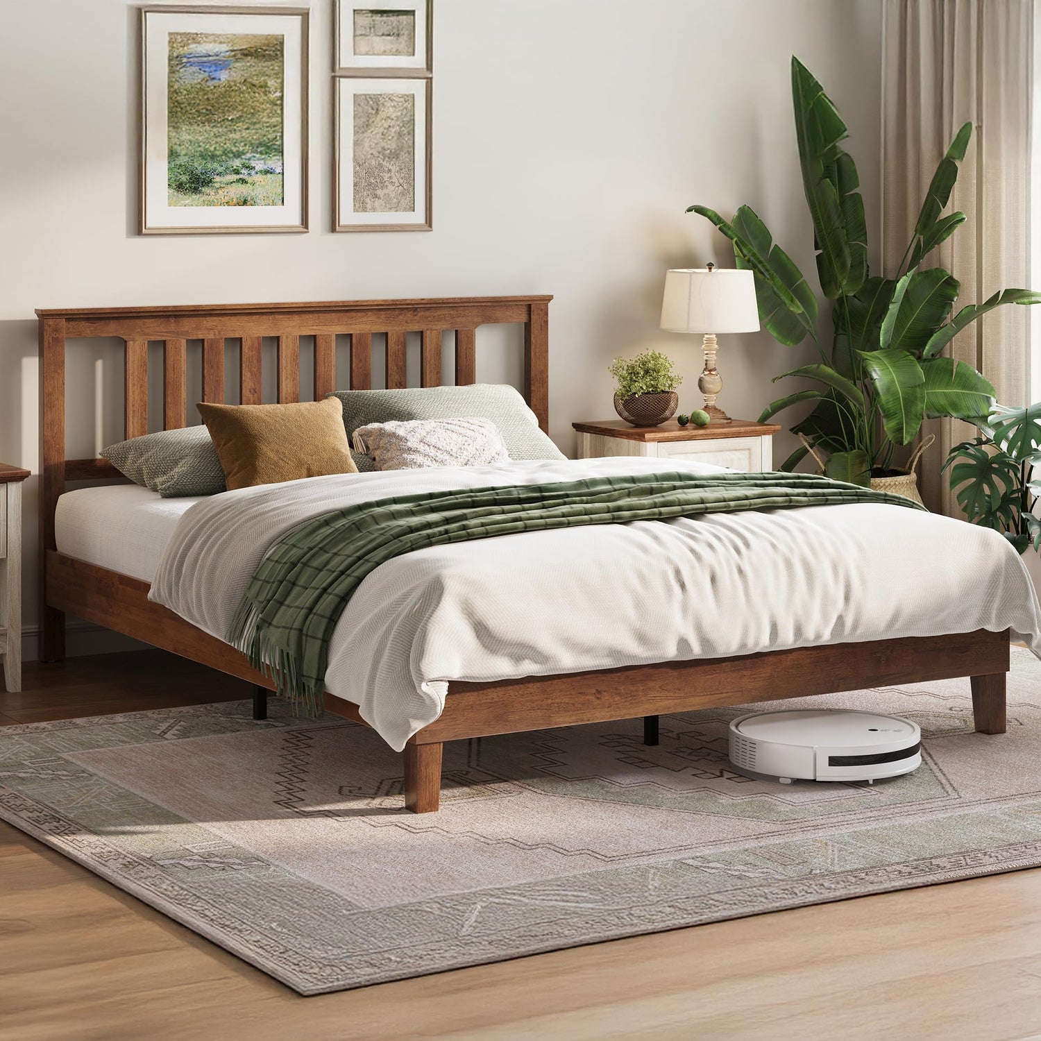 LINSY Queen Bed Frame, Wood Platform Bed Frame with headboard, Solid Wood Bed with Wood Slat Support, No Box Spring Needed, Easy Assembly, Walnut, Queen
