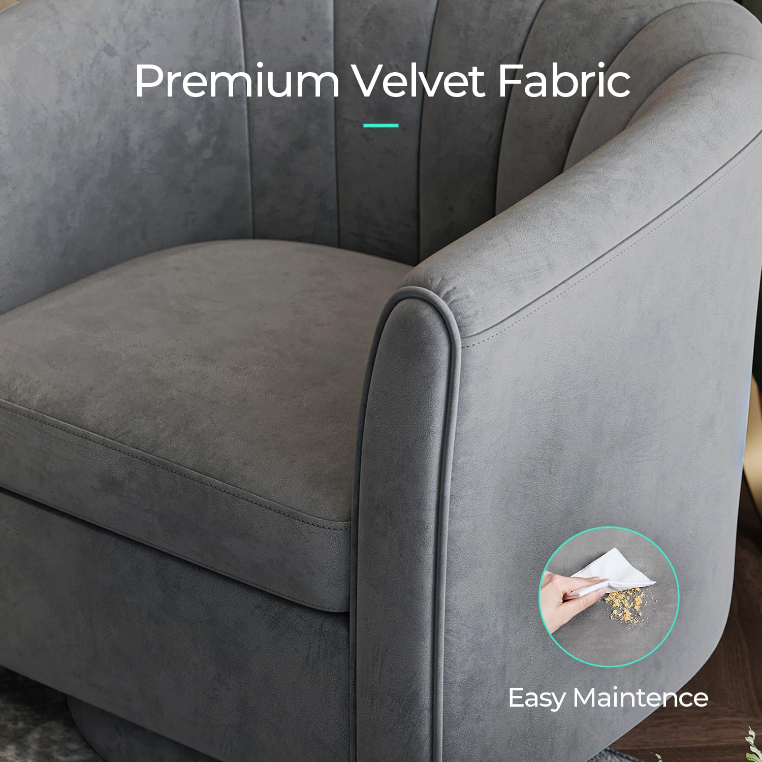 LINSY Swivel Accent Chair Ottoman Set: Velvet Small Barrel Chair with Foot Rest, Modern Reading Chair Upholstered Armchair with Footrest for Living Room Bedroom Study Room Office, Grey
