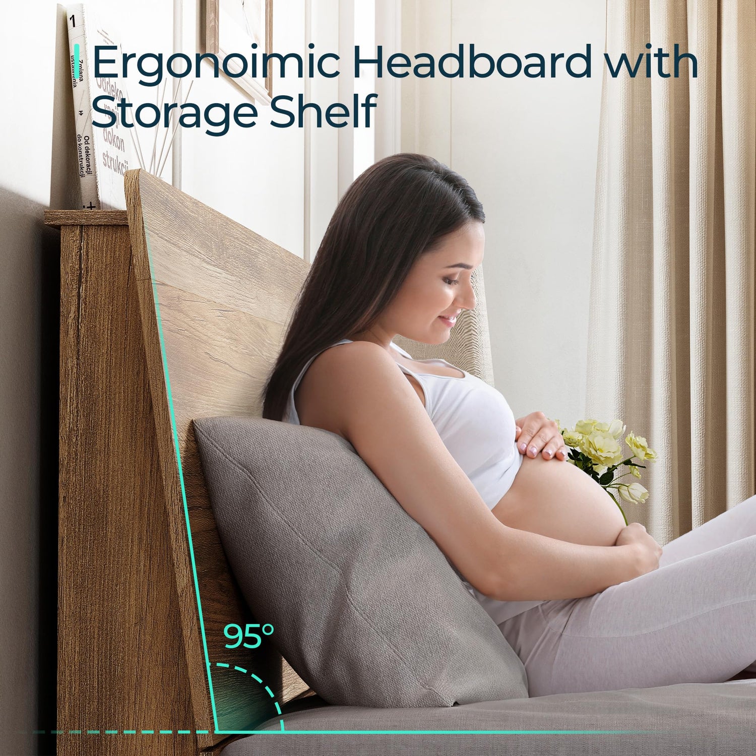 - Ergonomic Headboard: Elevate your comfort with our full platform bed frame featuring a 95-degree tilted headboard. This design promotes a healthy posture, providing a perfect spot to relax and enjoy your bedtime reading in ultimate comfort.