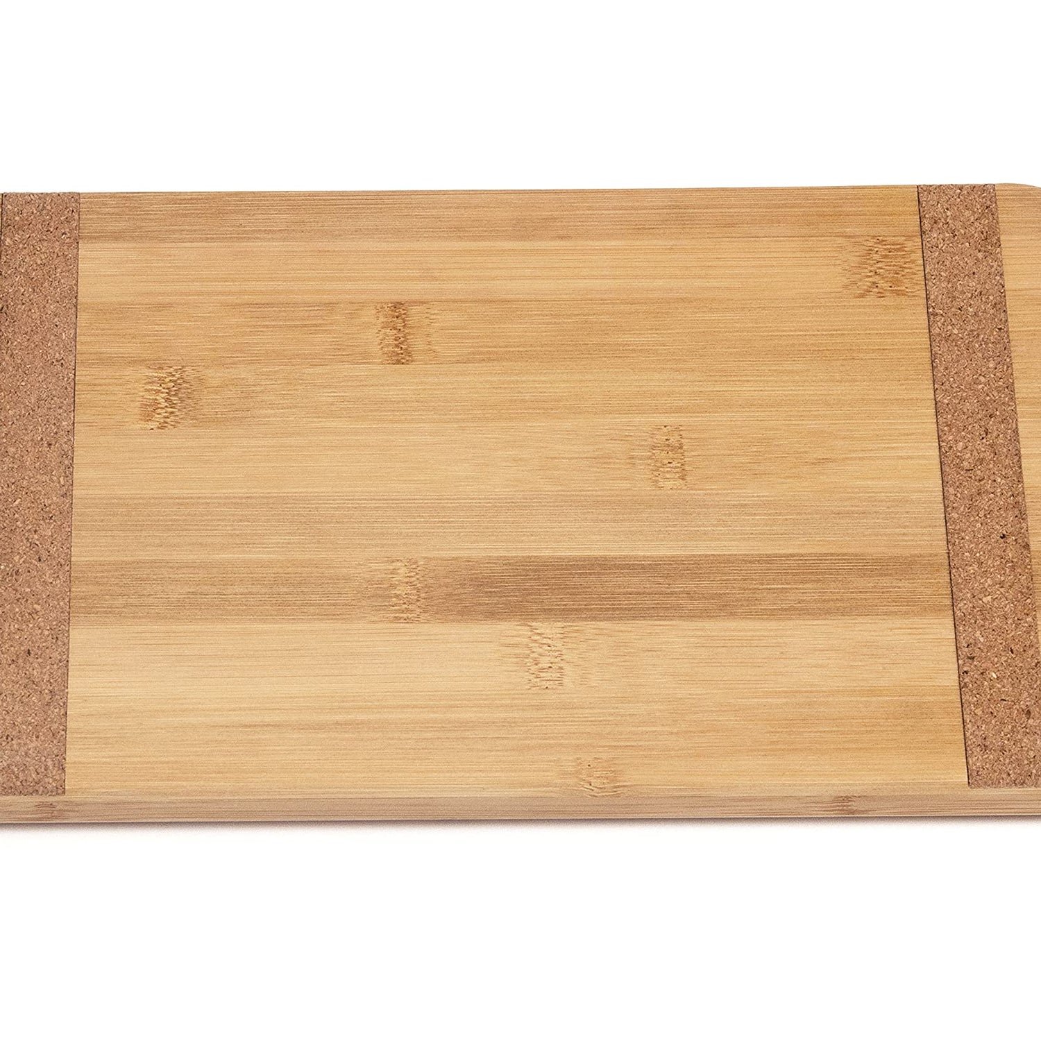 - Made from durable bamboo wood with a unique cork backing that prevents slippage during use