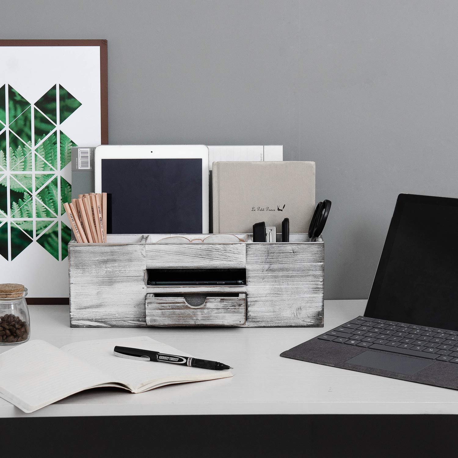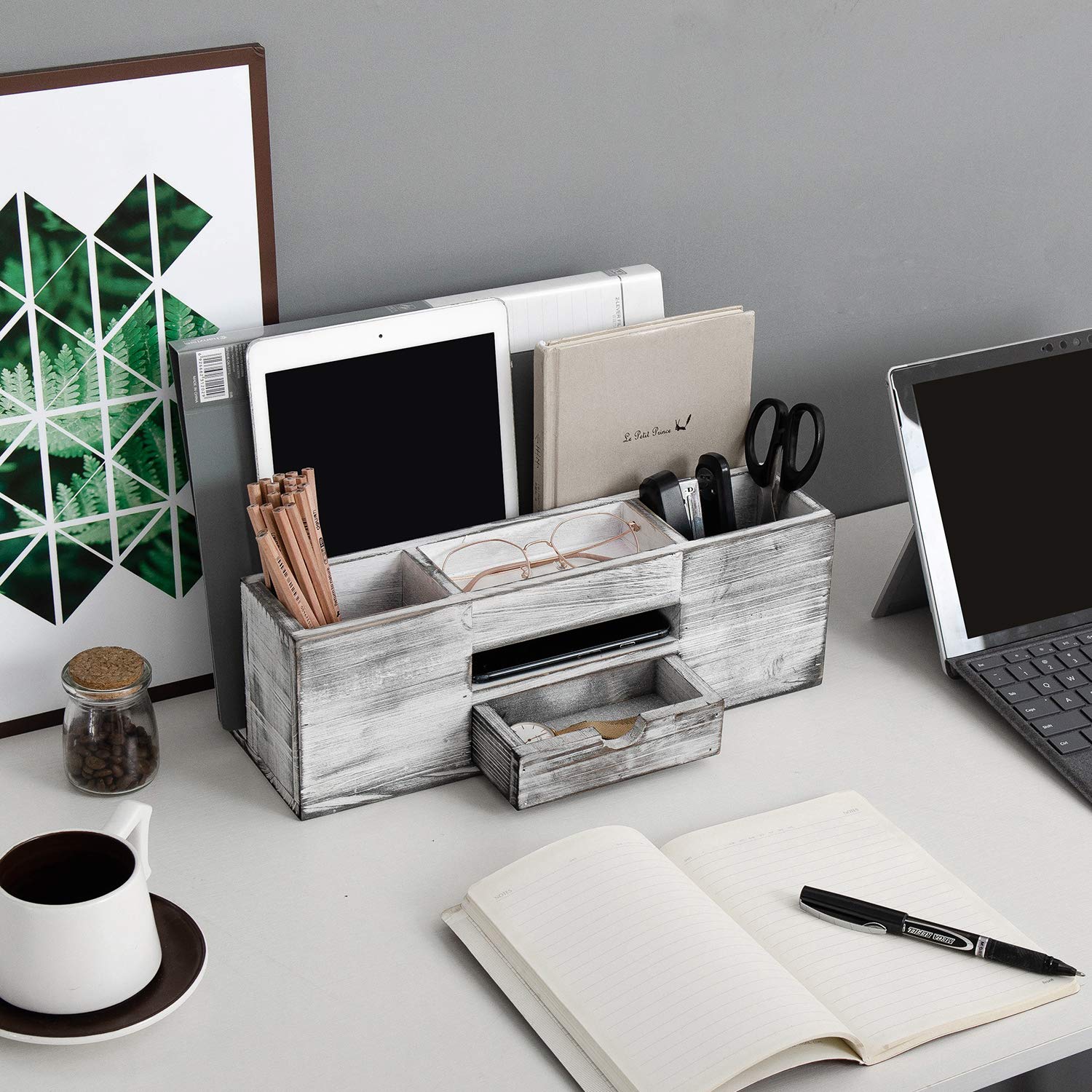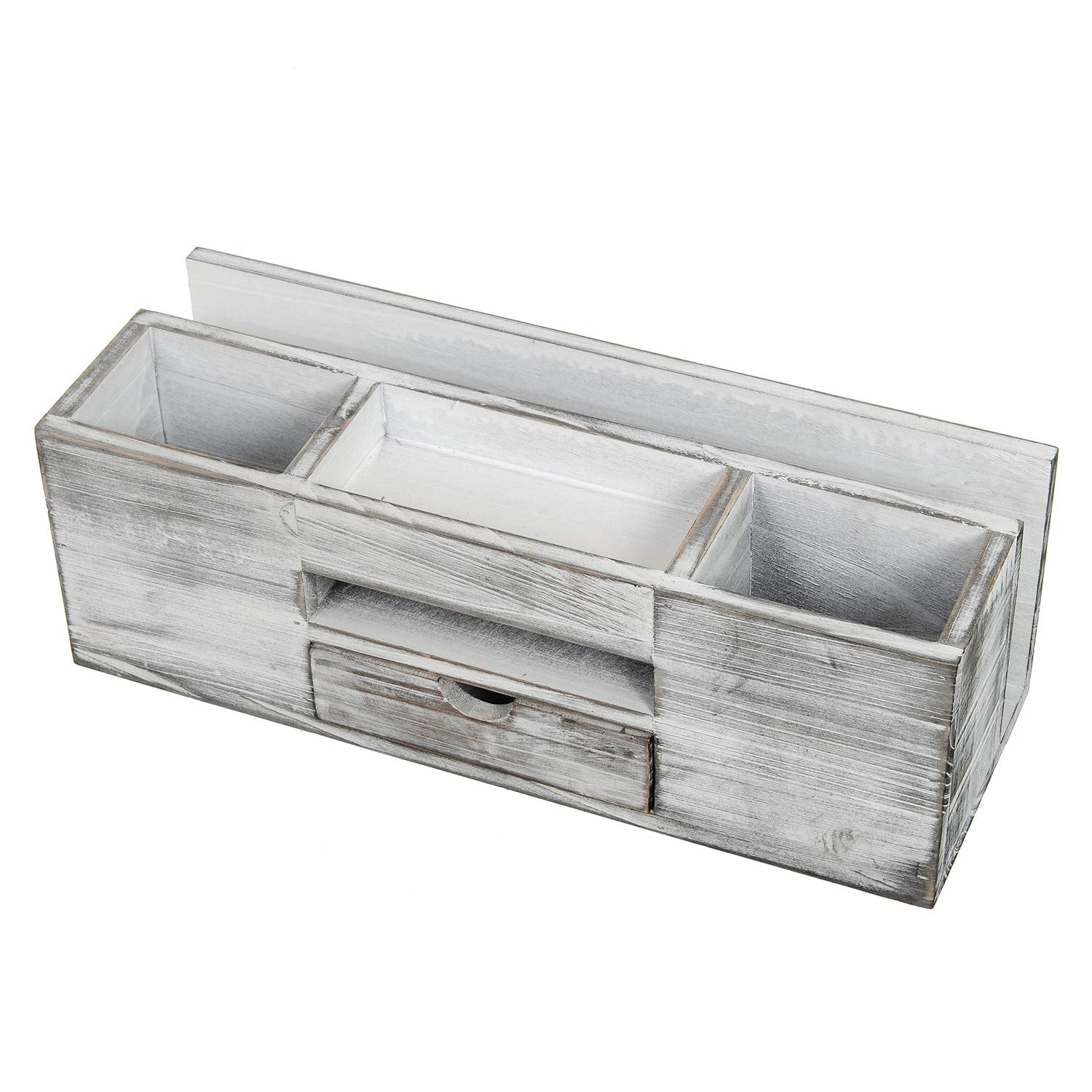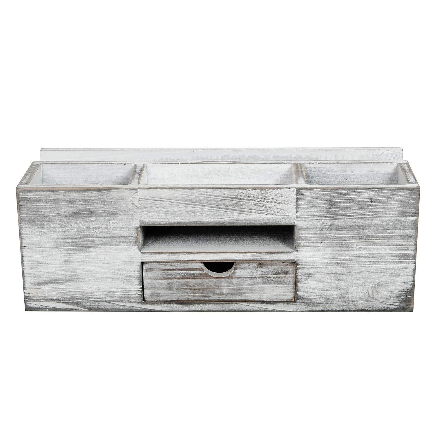 - Elegant Wood Organizer: Finely-crafted wooden desktop storage caddy with an elegant whitewashed touch, matching modern, countryside, farmhouse, and many other designs and enhancing the style and beauty of your living space