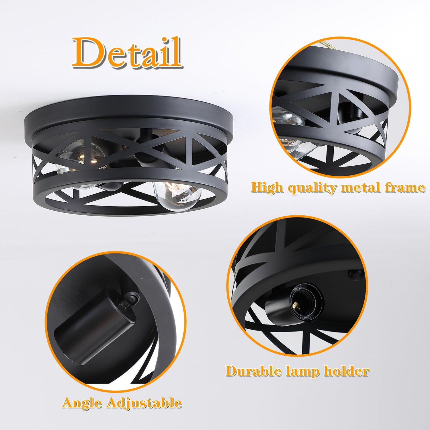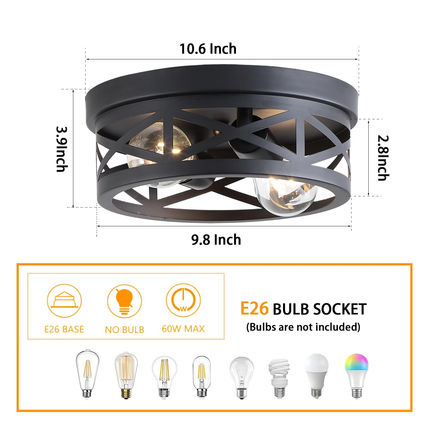 - Timeless & Sleek Statement:2 pack.2-Light flush mount ceiling light fixture features black finish sturdy metal frame,adds more character and modern industrial sense to your farmhouse.The rustic light fixtures are also ideal for artistic decoration.