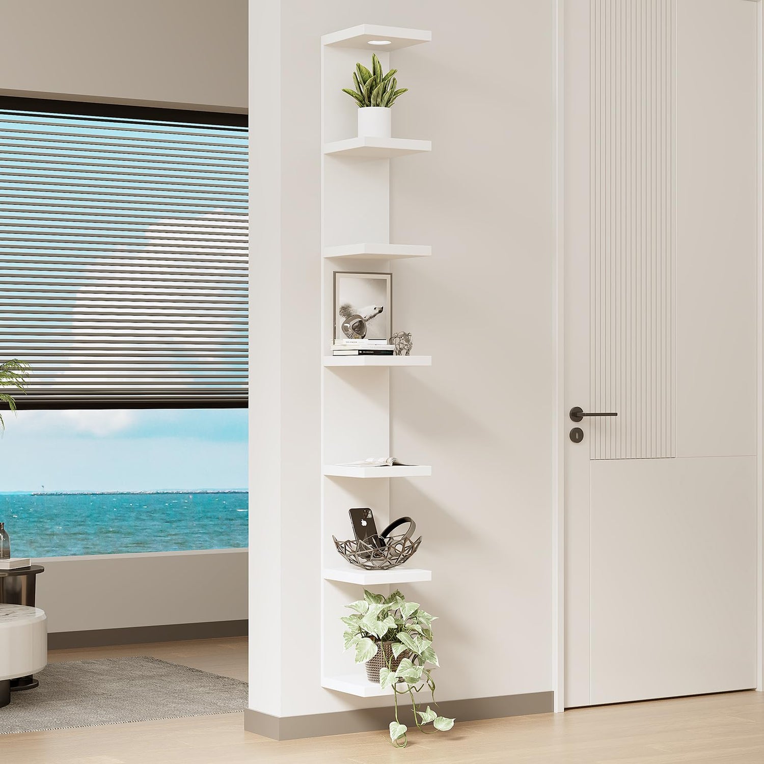 - FLOATING LACK WALL SHELF — Versatile 7-tier wall Shelf Unit in a crisp and timeless white finish—the perfect addition to elevate your home decor. Display charming showpieces, decorative items, and other prized possessions while offering functional storage with square-shaped display shelves — Enhance décor and fill in empty wall space above a desk, fireplace, entryway, vanity, child bedroom, between windows, and so much more.
