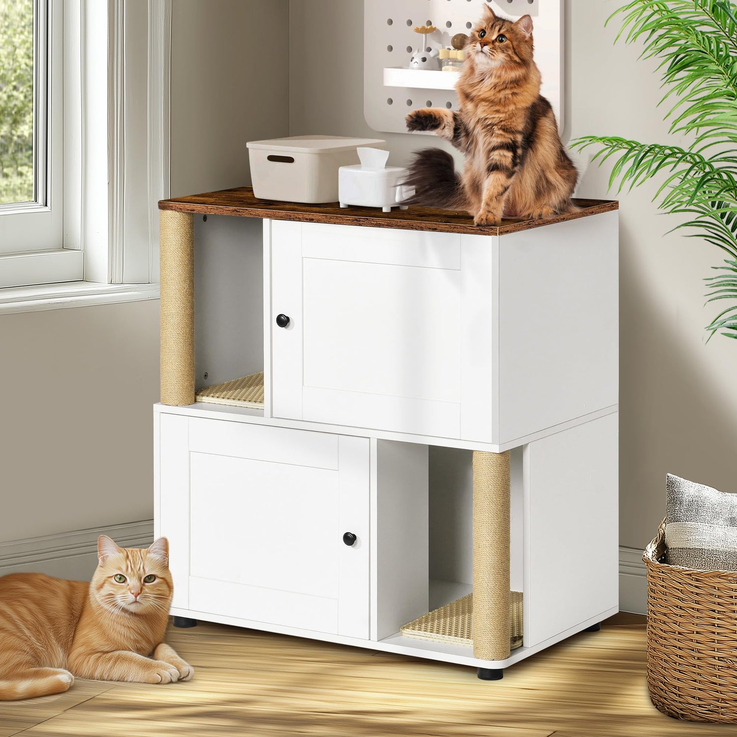 - Multi-Functional with Scratching Posts: The enclosure includes built-in scratching posts in front of each entrance at varying heights to satisfy your cats' scratching instincts. This versatile piece of furniture can serve as both a litter box cover and a cozy rest area for your feline friends, combining functionality with comfort.
