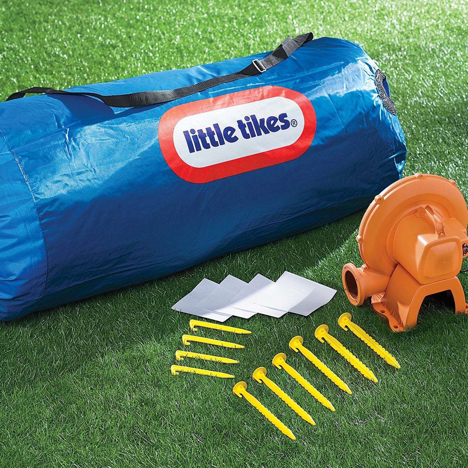 - INFLATE AND DEFLATE IN LESS THAN A MINUTE : The high-pressure blower included can inflate and deflate the Jump N Slide Bouncer in a jiffy. Pack up easily with its own carrying case for easy storage. Little Tikes bring some bounce to your house
