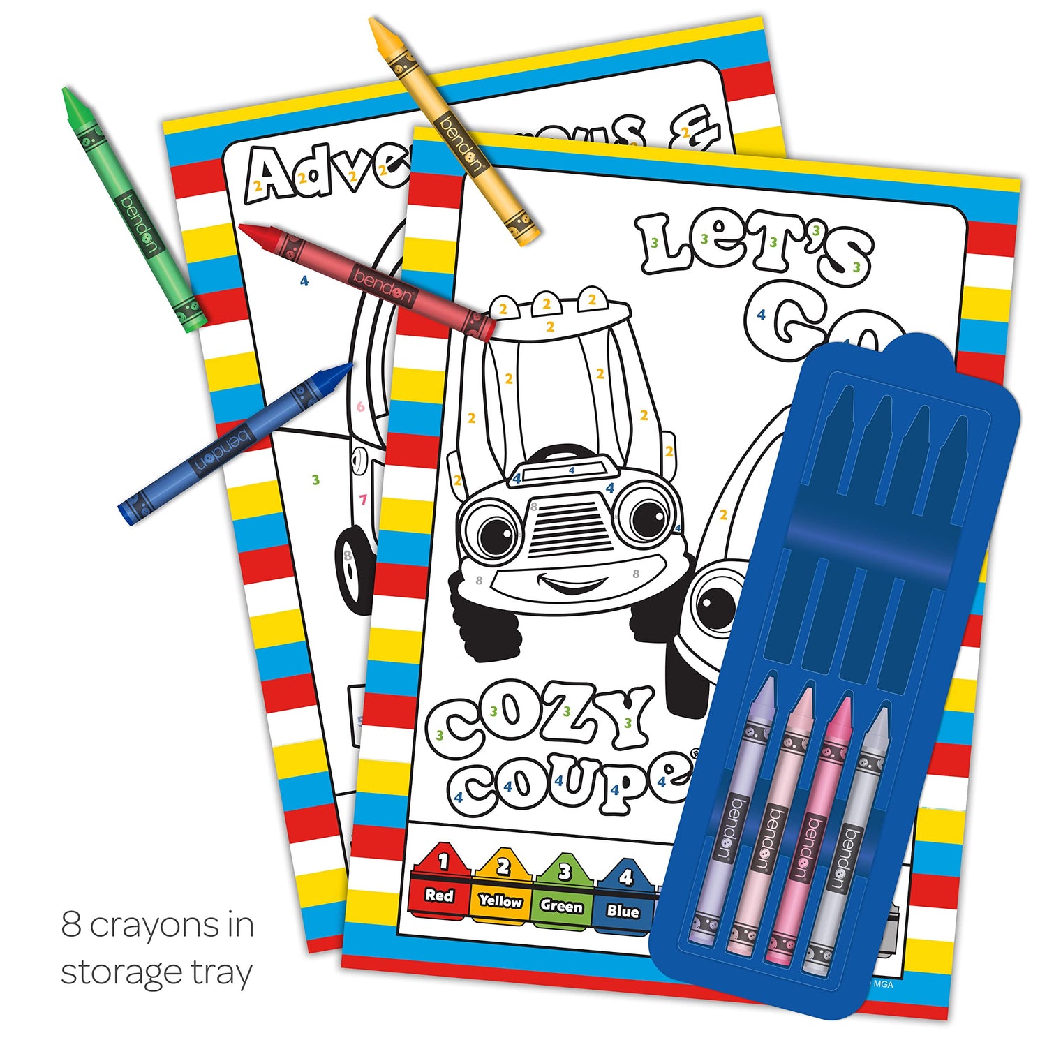 Details: Join the Little Tikes Cozy Coupe crew on a coloring adventure with Bendon's Little Tikes Let's Go Cozy Coupe Color by Number with Crayons Activity Book! This book features full-color pages with an easy-to-follow color key—perfect for that beginning artist in your life. As an added bonus, crayons are attached right on the cover. This is an official Little Tikes licensed product.