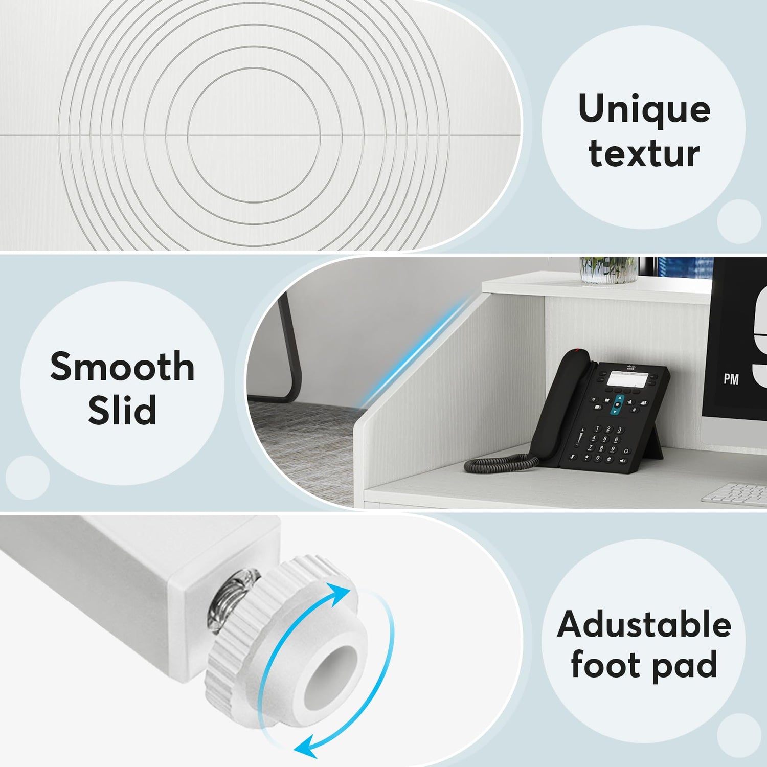 - 【Solid Construction】 This front counter desk is made from high quality engineered wood and enhanced with a rugged metal frame, making it sturdy enough to load up to 220 lb. Additionally, adjustable foot pads help keep the office desk stable on uneven surfaces, while also protecting the floor from scratches.
