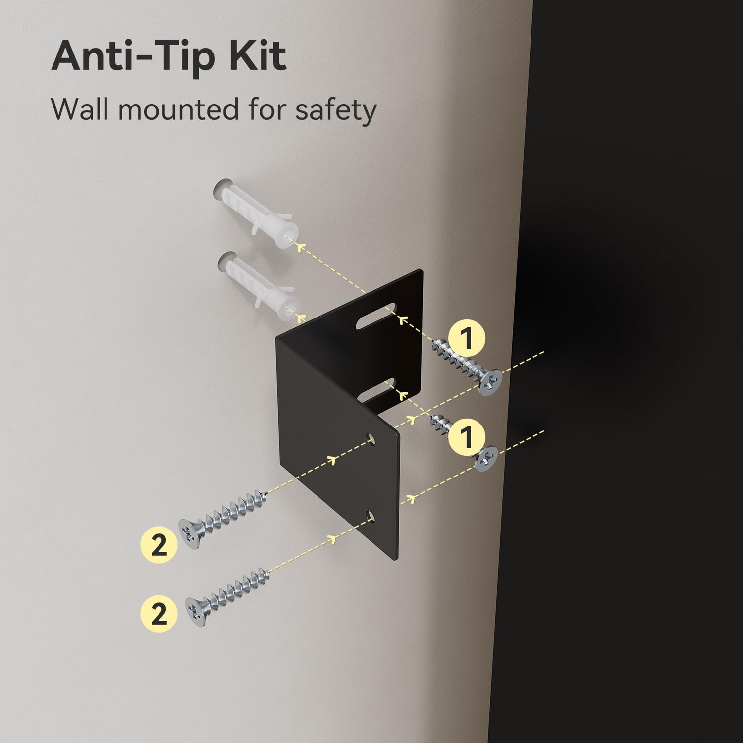 - L-Shaped Anti-Tip Device Included: A sturdy anti-tip device is provided to securely anchor the bookshelf to the wall, ideal for homes with children, pets, or earthquake-prone areas. Enjoy peace of mind with added protection against tipping