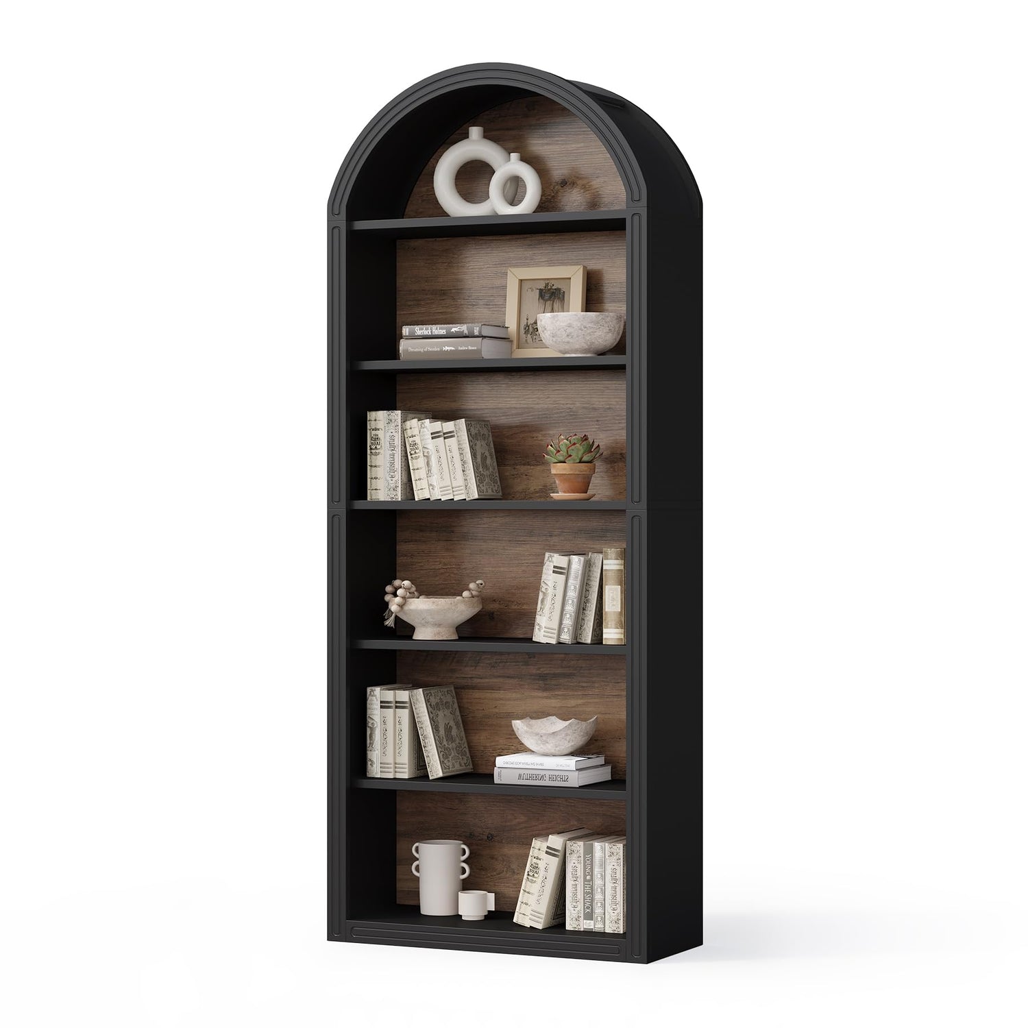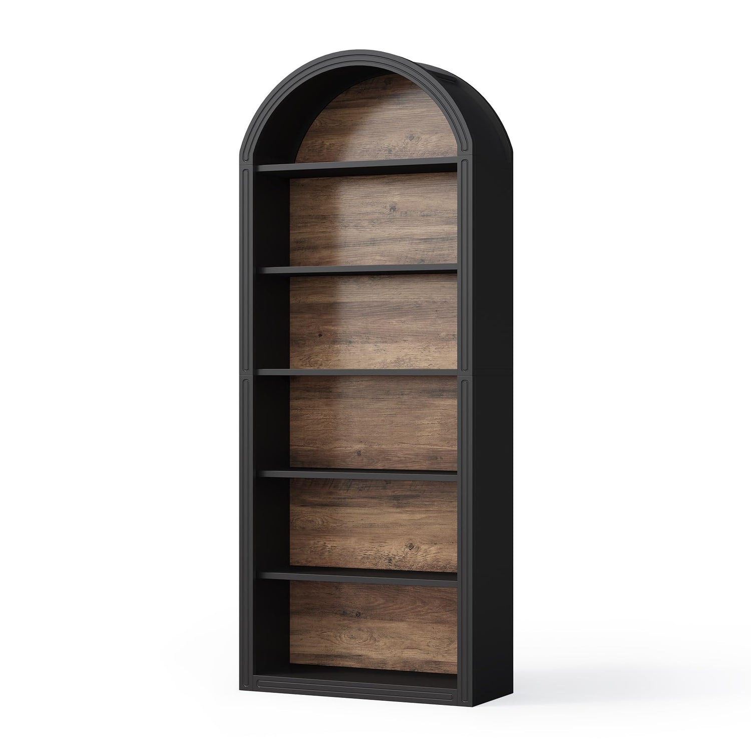 - Sleek Modern Aesthetic: Its black brown finish and arched design add minimalist elegance to any room. Perfect for modern, farmhouse, or Scandinavian interiors, this bookcase doubles as a stylish display unit for showcasing your favorite items