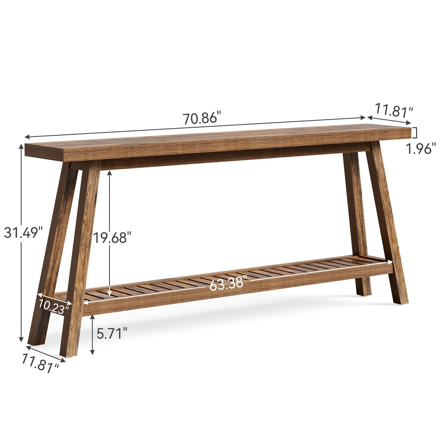 LITTLE TREE 70.9-Inch Extra Long Console Table for Entryway, 2-Tier Narrow Wooden Sofa Table Behind Couch, Large Sofa Tables for Living Room, Farmhouse Foyer Hallway Entry Table, Rustic Brown