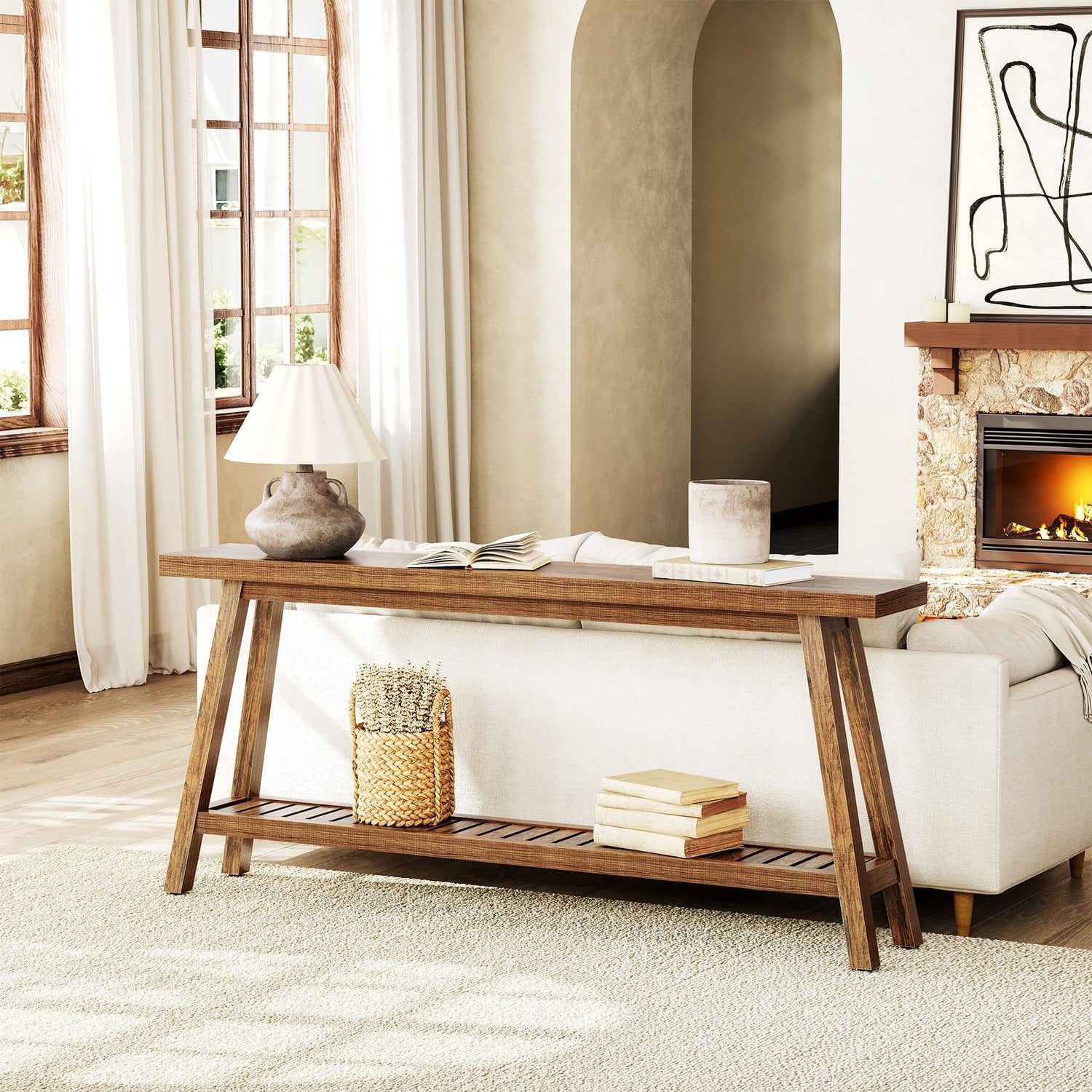 - Two-Tier Design: Equipped with a 2-tier layout, this sofa table allows for organized storage, keeping your essentials within reach and your space tidy