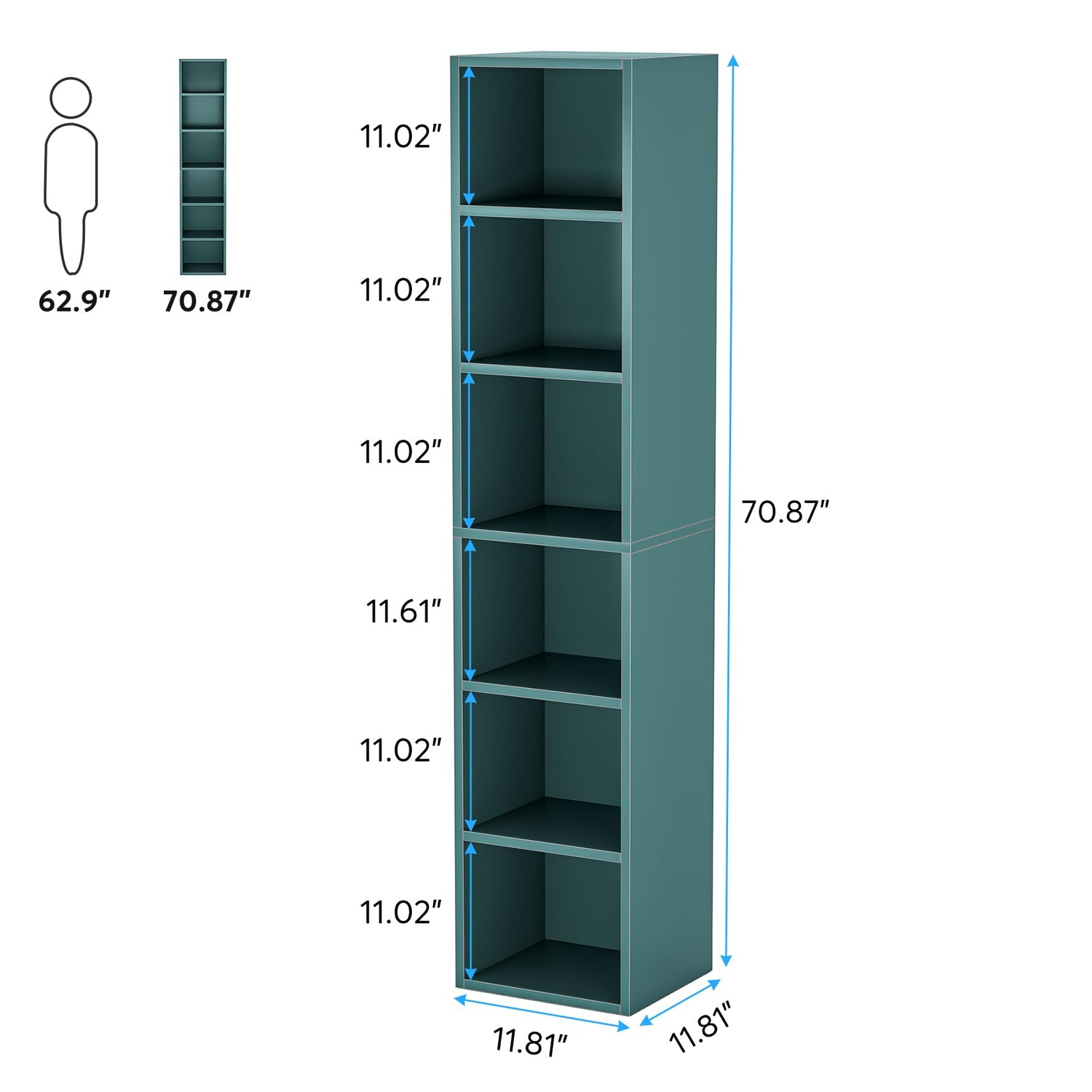 LITTLE TREE 70.9 Inch Tall Narrow Bookcase, Corner Bookshelf 6 Tier Cube Display Shelf Storage Organizer for Small Space, Blue