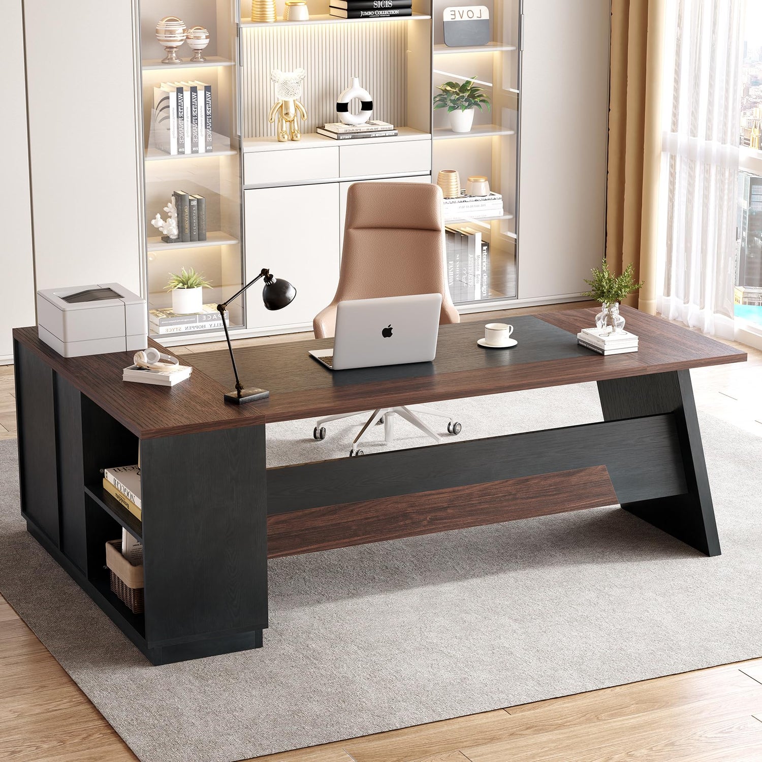 - High-Quality Construction: Crafted with top-notch materials, this desk features a sturdy build and robust surface to withstand daily office use. The mix of brown and black finishes gives it a sophisticated and modern look that complements any home office decor