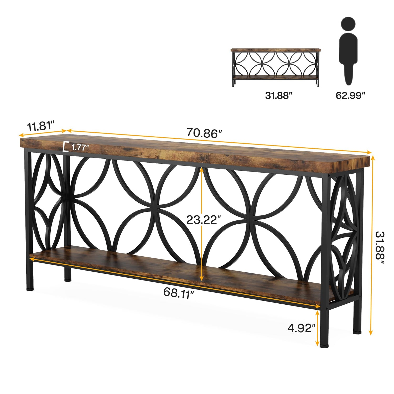 LITTLE TREE Sofa Table, 70.9 Inch Industrial Behind Couch Table with Storage Shelves, Narrow Long Console Table for Entryway, Living Room, Foyer, Hallway, Office