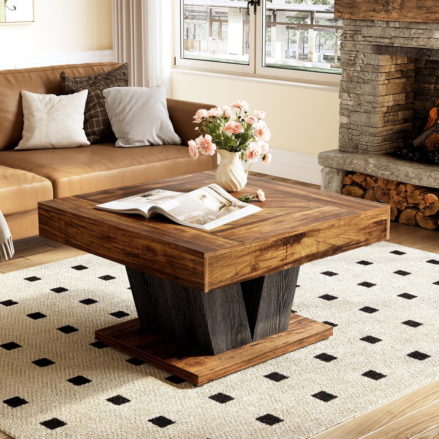 - Spacious and Versatile: The coffee table top measures 31.5" W x 31.5" D, providing you with plenty of space for coffee, newspapers, and home decor. You can use it as a workstation or a centerpiece in living room