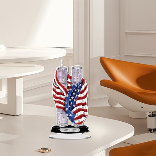 LIULIMI DIY 5d Diamond Painting Kits,Special Shaped Diamond Art Kit for Adults,Stand Up Acrylic Ornament Making kit,Double Sided Diamond dotz Painting,Gift(American Flag/Twin Towers)