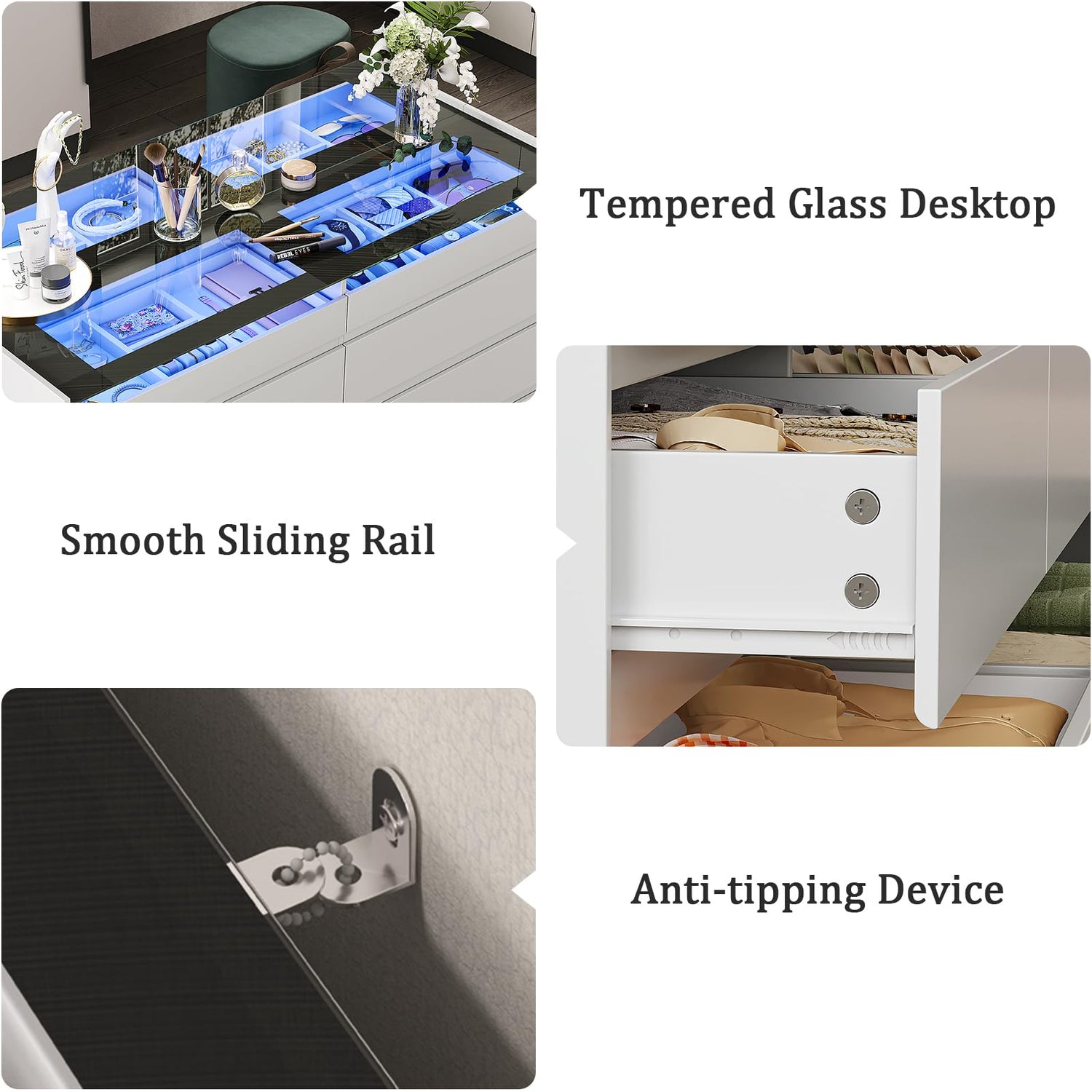 - 【Modern Style】This closet island is designed in modern style. The tempered glass desktop is clearly visible to better display your belongings, it is ideal for storing cosmetics, jewelry and essentials. Matching with no-handle design, features minimalist sense. Multi-color RGB LED lights on the top to create unique atmosphere,adding a touch of stylish aesthetic to the room.