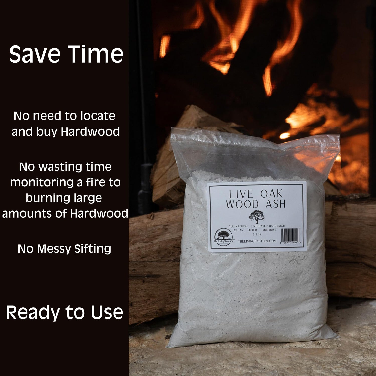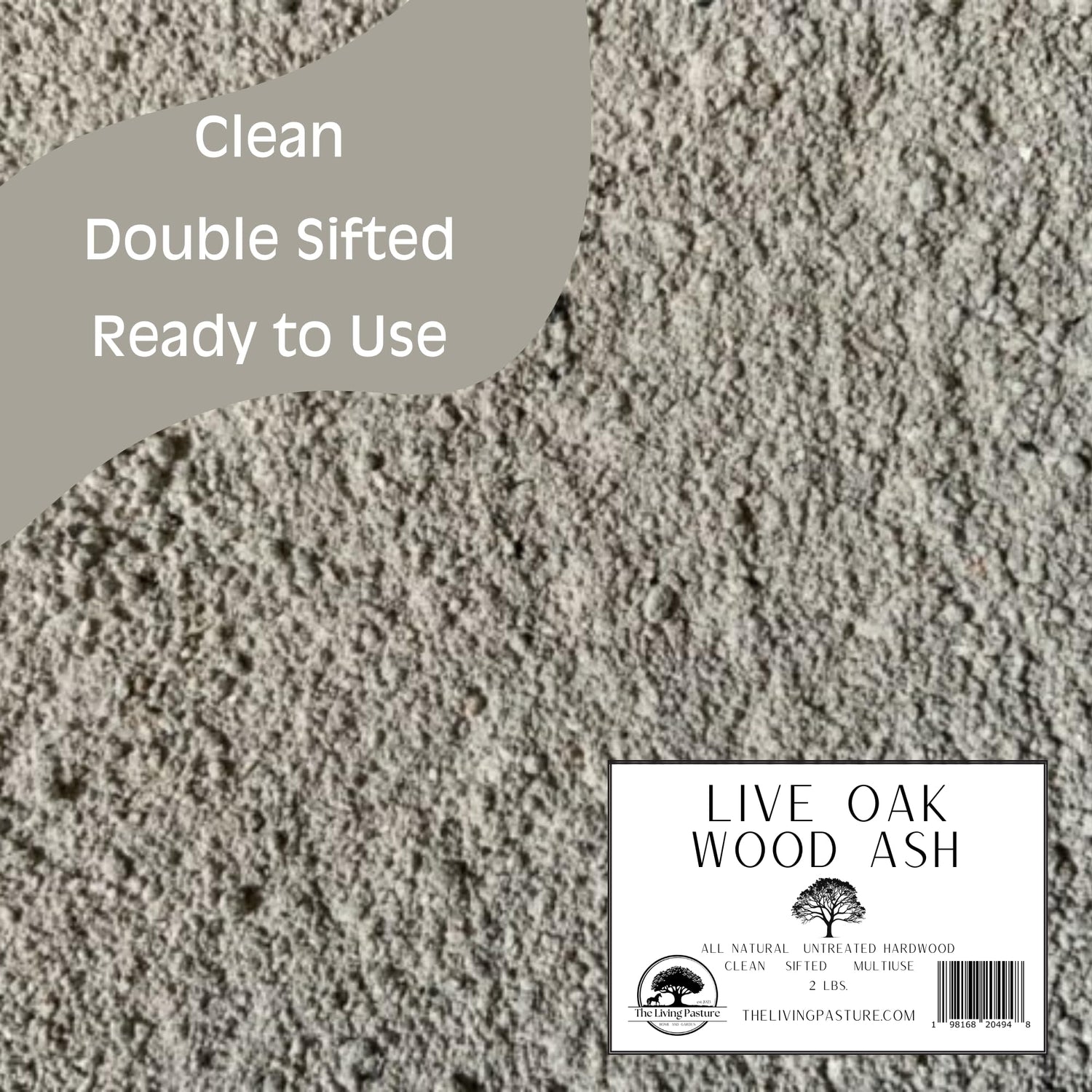 - All-Natural Sifted Untreated Hardwood Ashes: Our Live Oak Wood Ash is sustainably sourced, fired and packaged in Texas. No chemically treated wood, glues, painted wood or additives. It is the perfect choice for eco-conscious individuals.