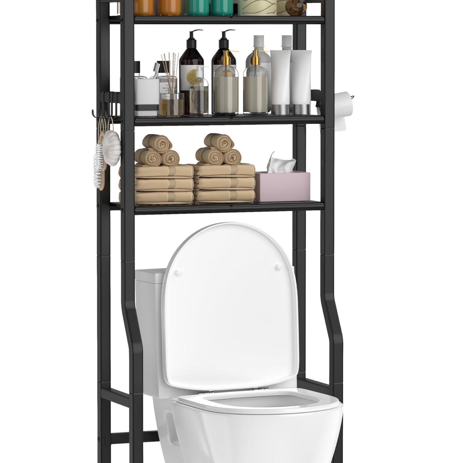 Livilord 3 Tier Over The Toilet Storage Rack with Toilet Paper Holder, Metal Freestanding Bathroom Shelves with 4 Hooks, Over Toilet Storage Shelf for Bathroom Storage, Black