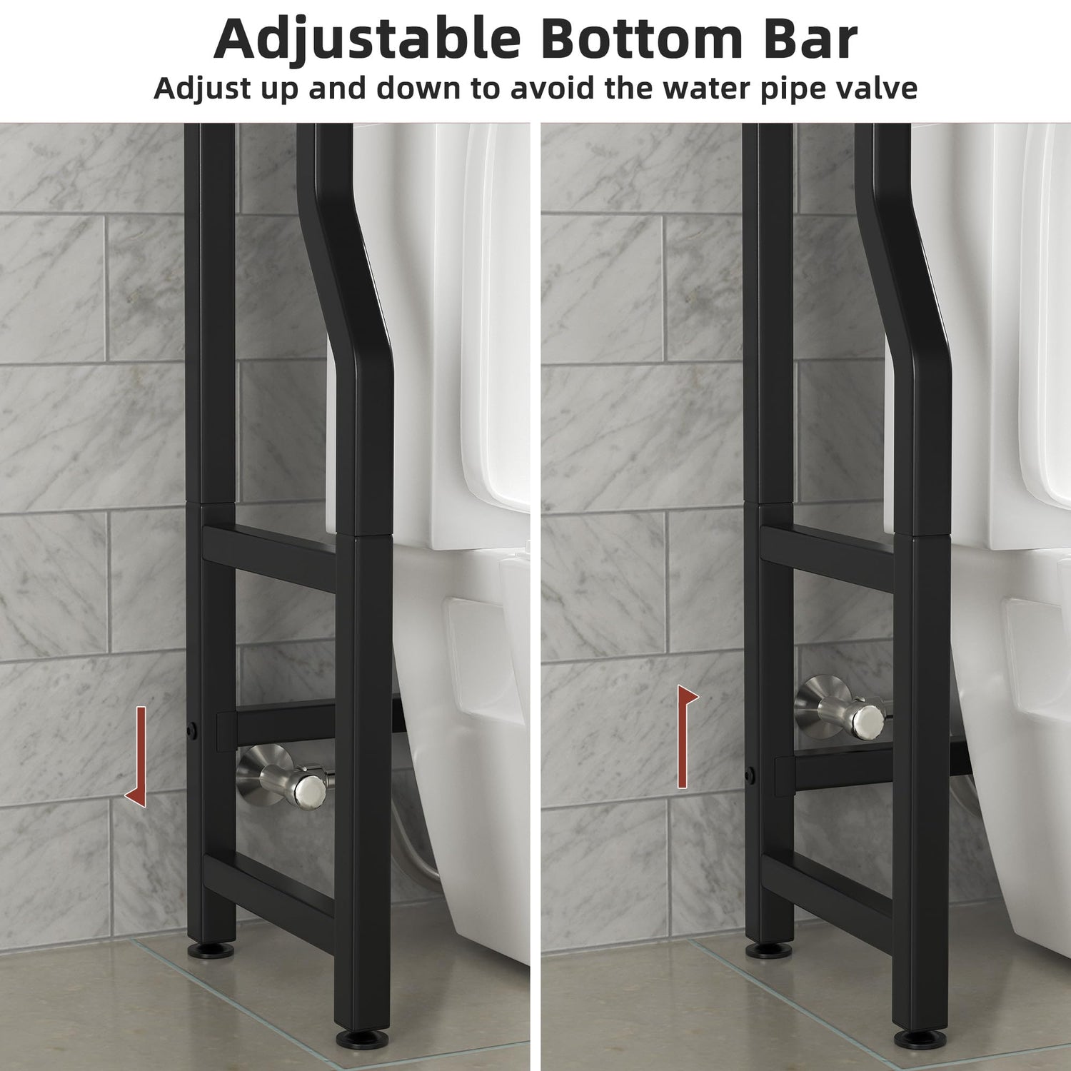 - High Quality Materials - Made of sturdy carbon steel, this over the toilet storage rack is both stylish and durable. The feet come with adjustable height, keeping the unit stable and protecting your floor from scratches and wear and tear.
