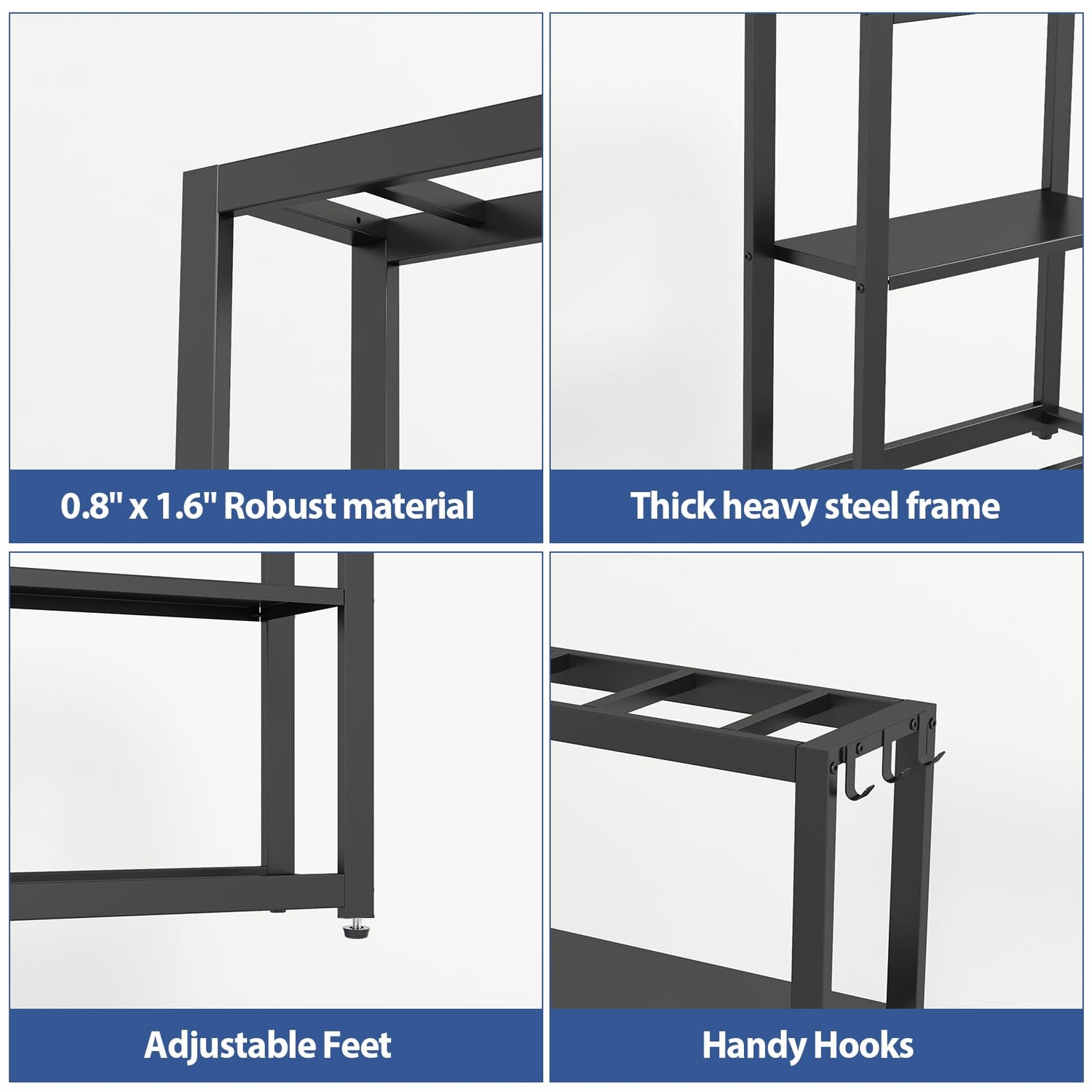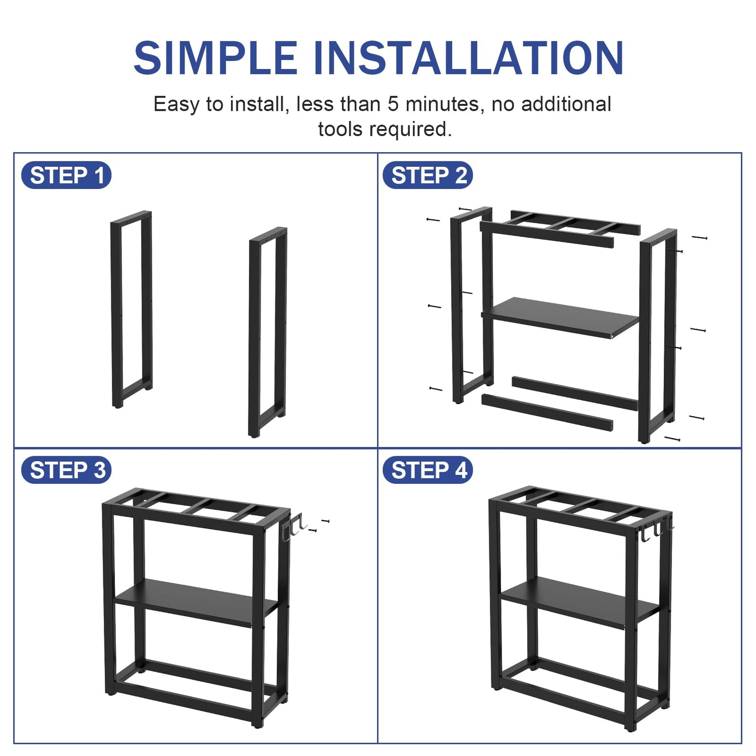 - MULTIFUNCTIONAL DESIGN: The center of the aquarium stand is a layer of pure steel shelves, which can store fish food, green plants, etc., increase your storage space and decorate your house. The extra hook design allows you to hang parcels, bags and other items, so you don't have to worry about nowhere to hang your items.