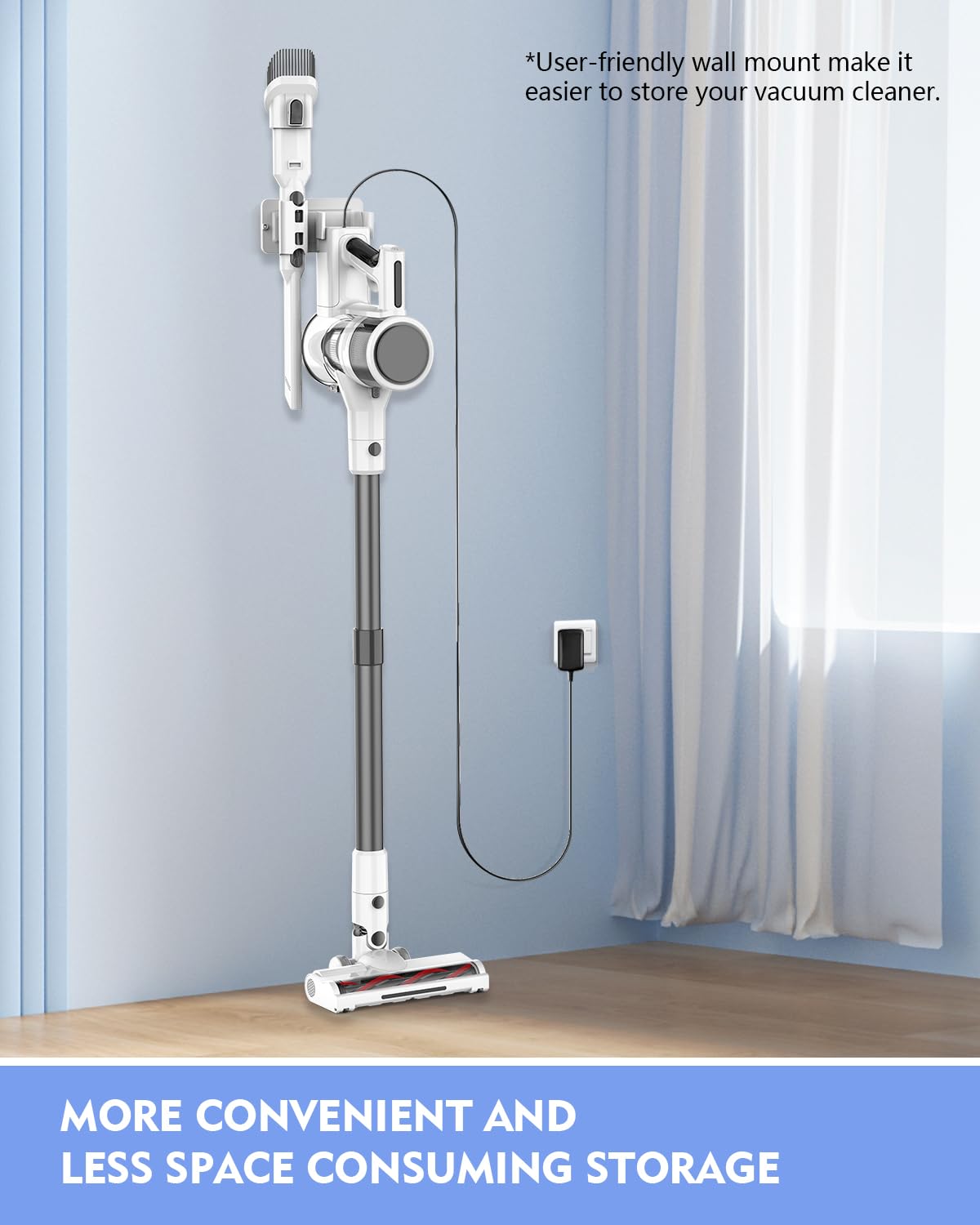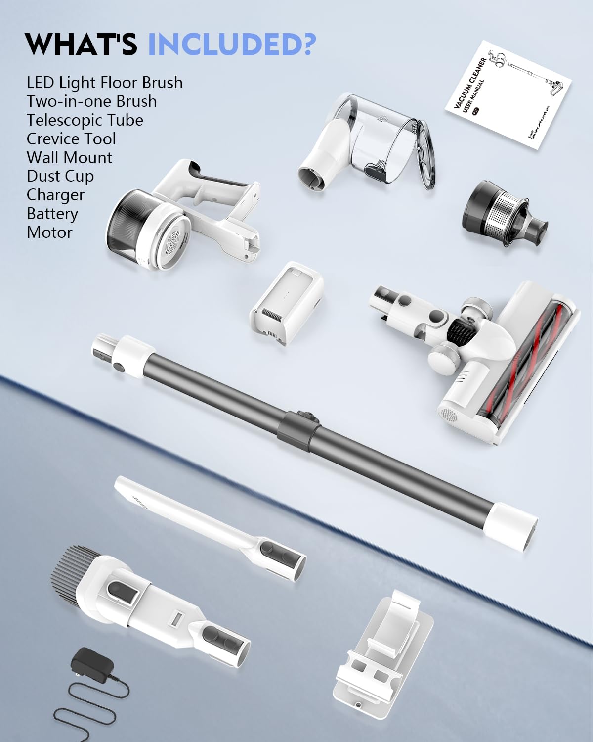 Ljuren Vacuum Cleaners for Home, 80,000PRM Powerful Motor Cordless Vacuum with Removable 2200mAH Battery up to 35 Mins Worktime, 2 Adjustable Modes and Detachable Parts Stick Vacuum (White Zinc Gray)