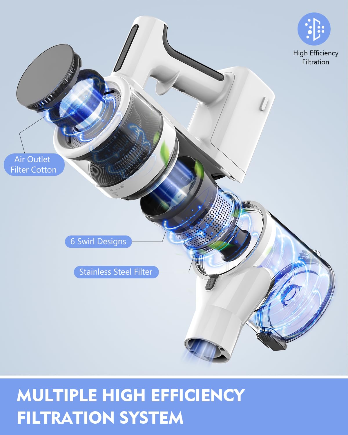 - 【Experience Power Suction of Ljuren Cordless Vacuum】: Cordless vacuum cleaner has 80,000PRM of suction power. No amount of dust or dirt can compete with powerful vacuum machine! Vacuums incorporates an advanced 5-stage filtration system that effectively clean the small particles to keep your home fresh. Creating a healthier living environment for your family and you!