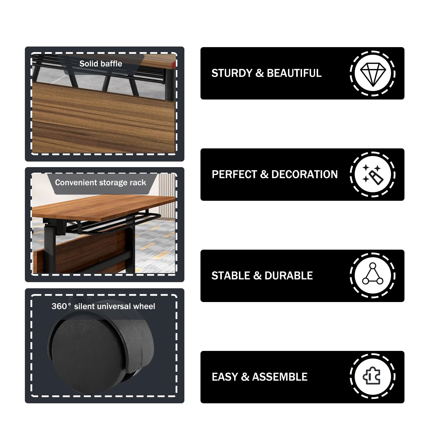 - 360°Mobility----This folding mobile Meeting table comes with 4 silent swivel wheels, the casters can quickly move 367° to any corner, which is flexible and convenient, saving effort and worry, when there is an emergency meeting training,the mobile conference table can be quickly moved and unfolded for meetings,Be able to respond to the needs of office meetings in a timely manner