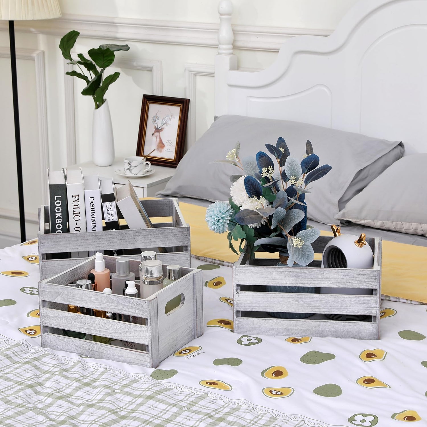 LKMANY Decorative Wood Crates Nesting Crates Storage Container,Rustic Wooden Crates for Storage, Display, Decor, Boxes-Nature Rustic White Set of 3
