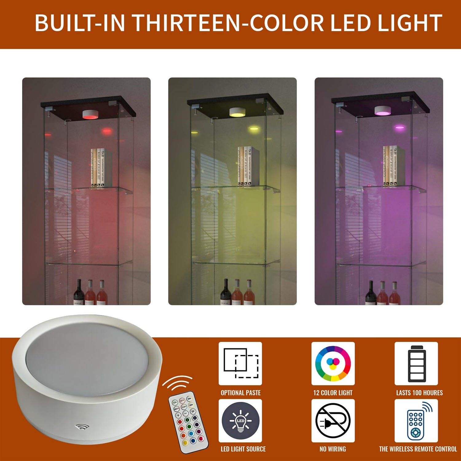- 【Glass Display Cabinet With Lights】This display cabinet is equipped with 2 colorful lights and a remote control with adjustable colors, allowing you to create the perfect atmosphere for any occasion. There are 12 adjustable colors to choose from, and you can freely adjust the brightness to easily set the atmosphere that suits your preferences or the theme of the event