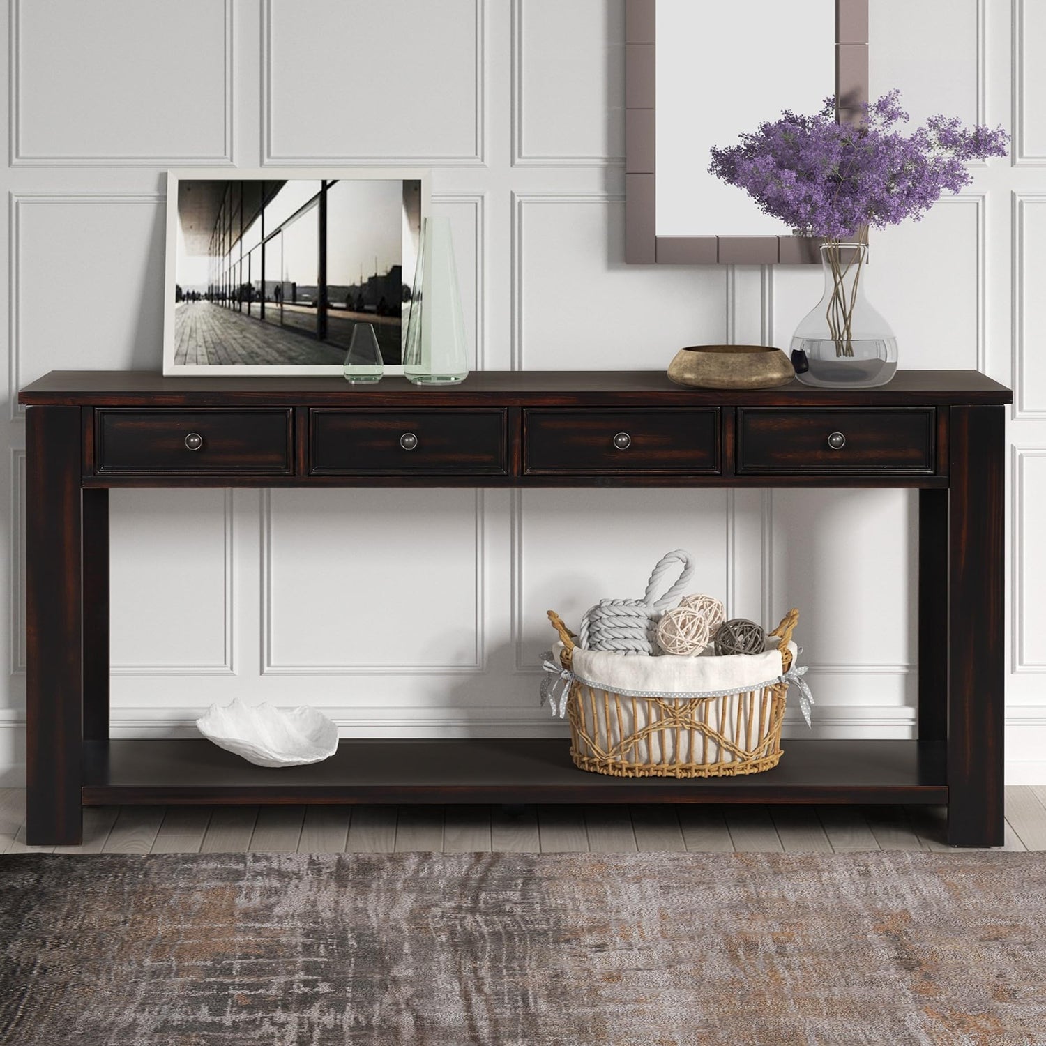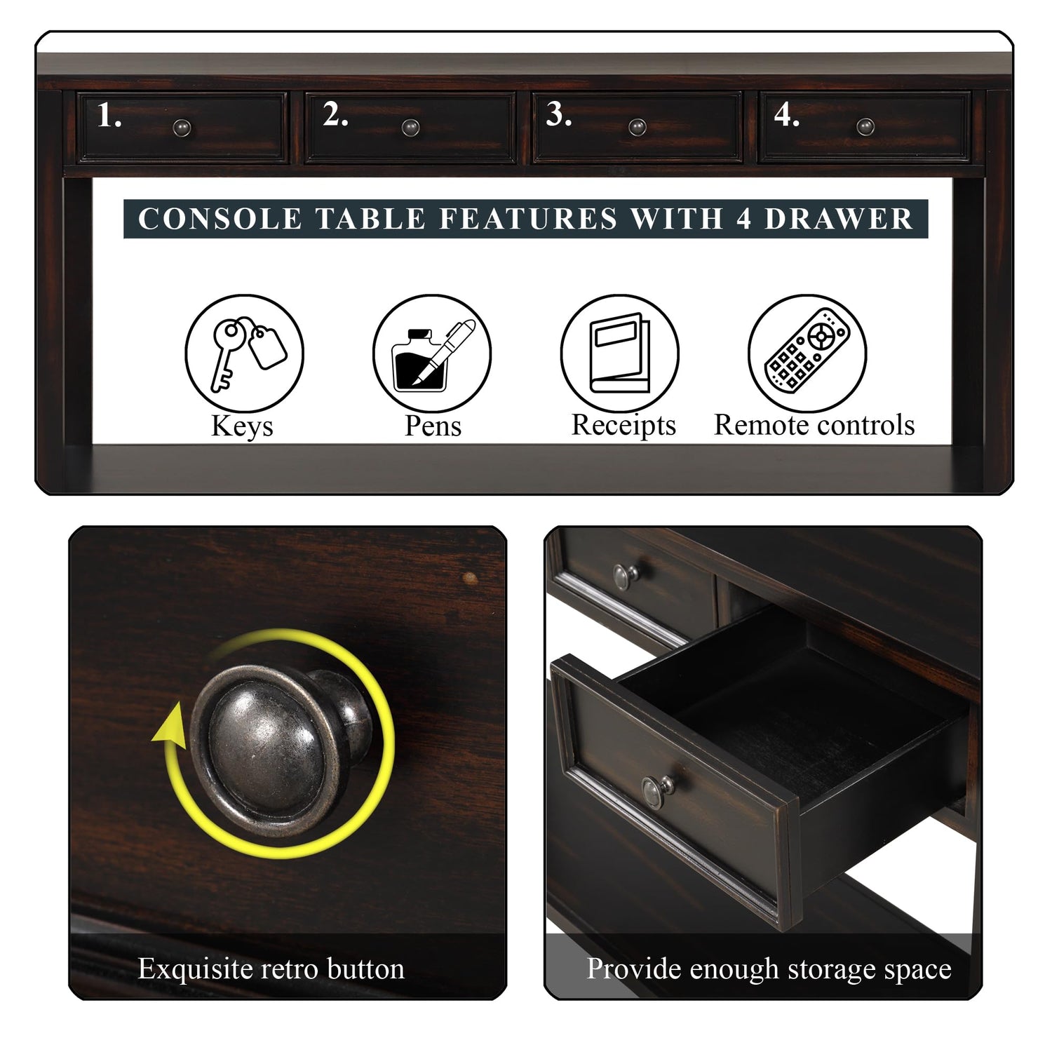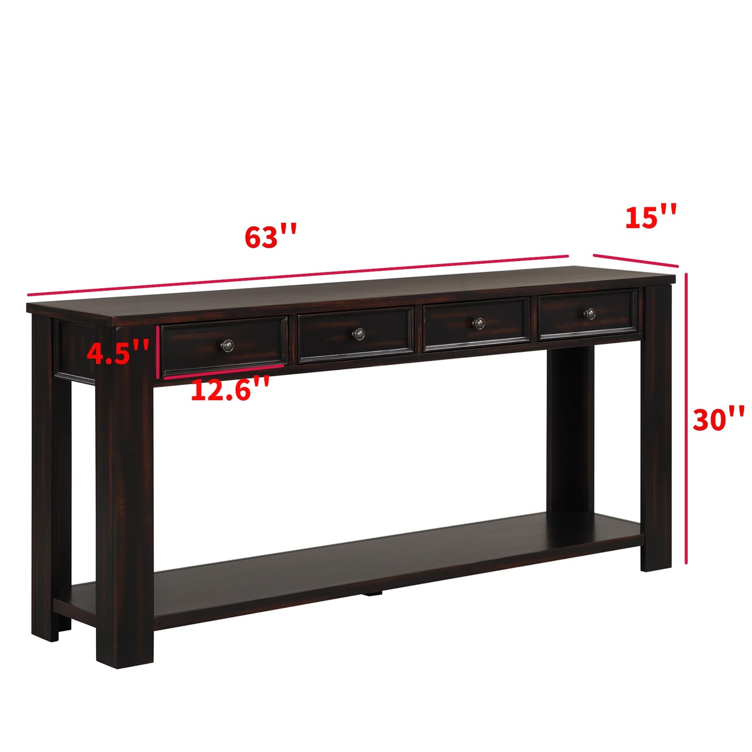 LKTART Solid Wood Console Table 63 in Sofa Table with Storage Drawers and Bottom Shelf Farmhouse Entryway Table for Hallway Foyer Sofa Couch Table