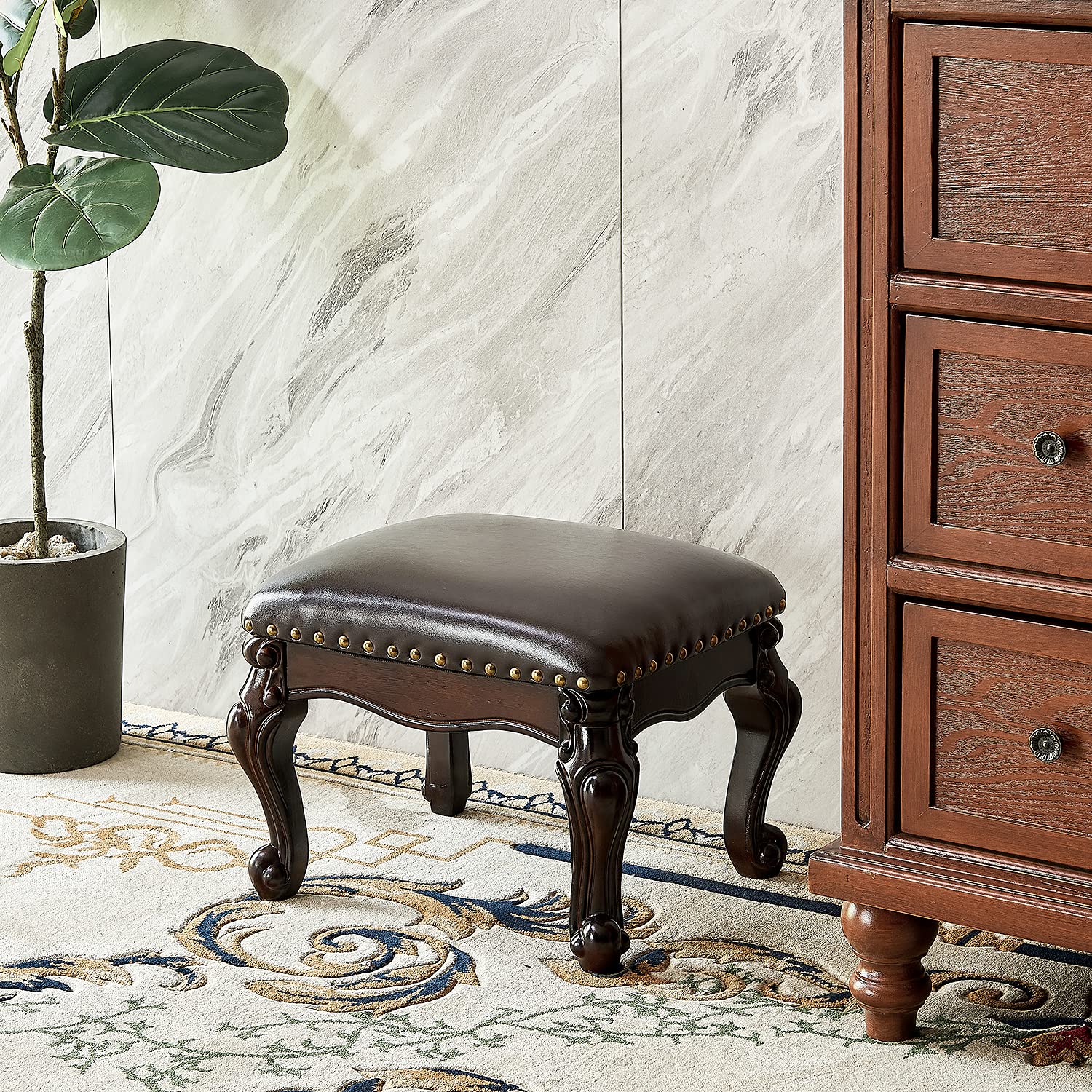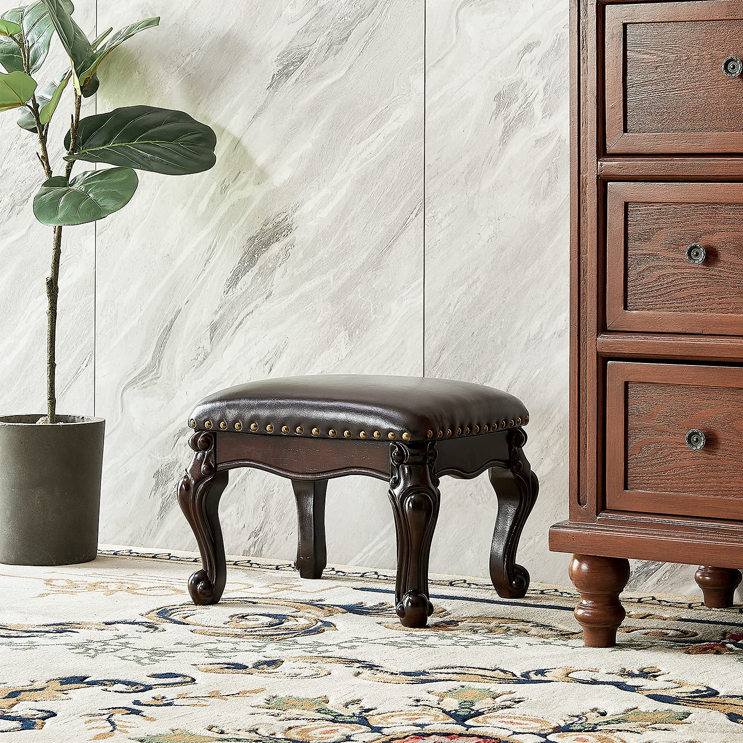 LKZ Foot Stool Microfiber Leather Ottoman Wooden Vintage Stool Small Sofa Stool Footrest Stool for Living Room Bedroom (Black-Brown)