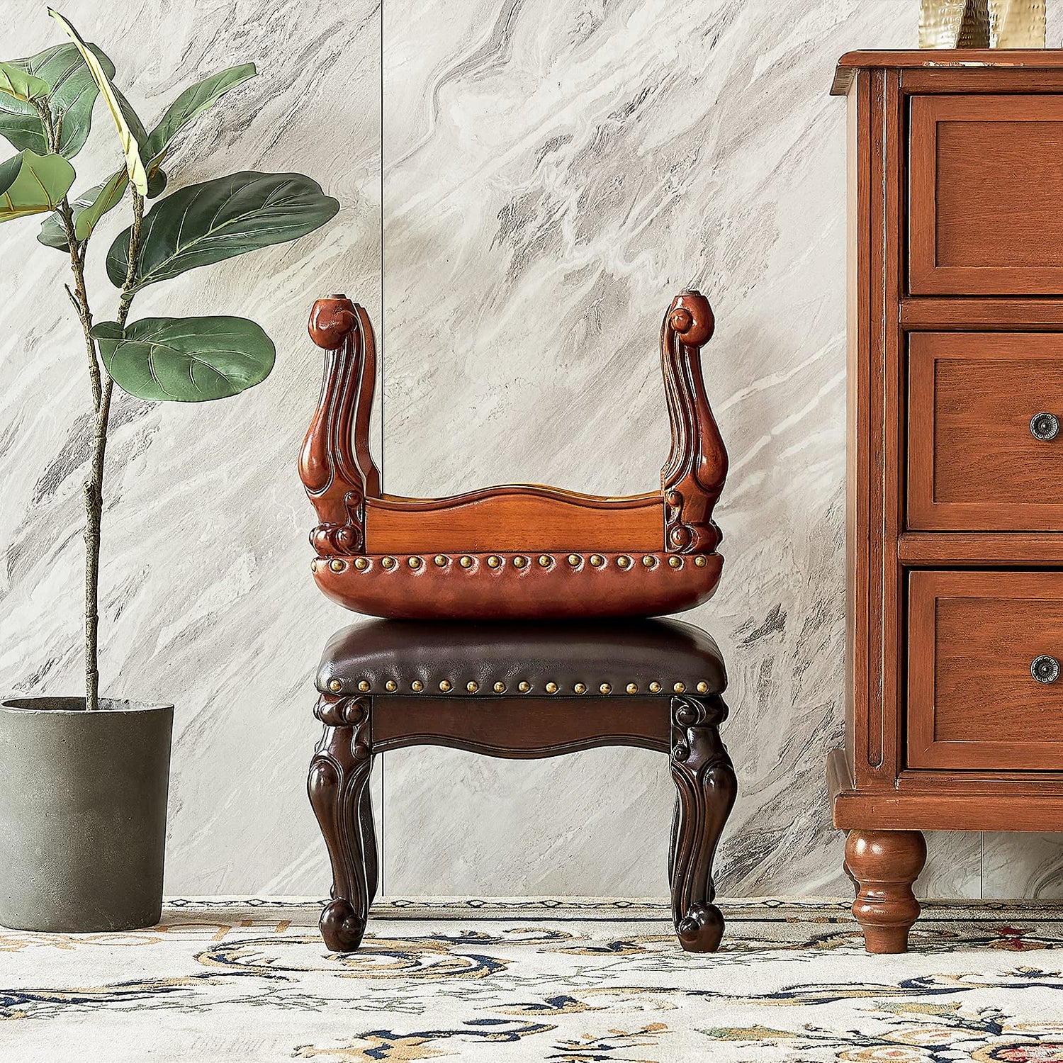 Details: Brown microfiber leather fabric with solid wood stool feet is stronger and more durable than PU leather, easy to clean, just wipe it with a damp cloth.The size is moderate, suitable to be placed anywhere in the home, such as entrance, living room, kitchen, bedroom, study, etc.