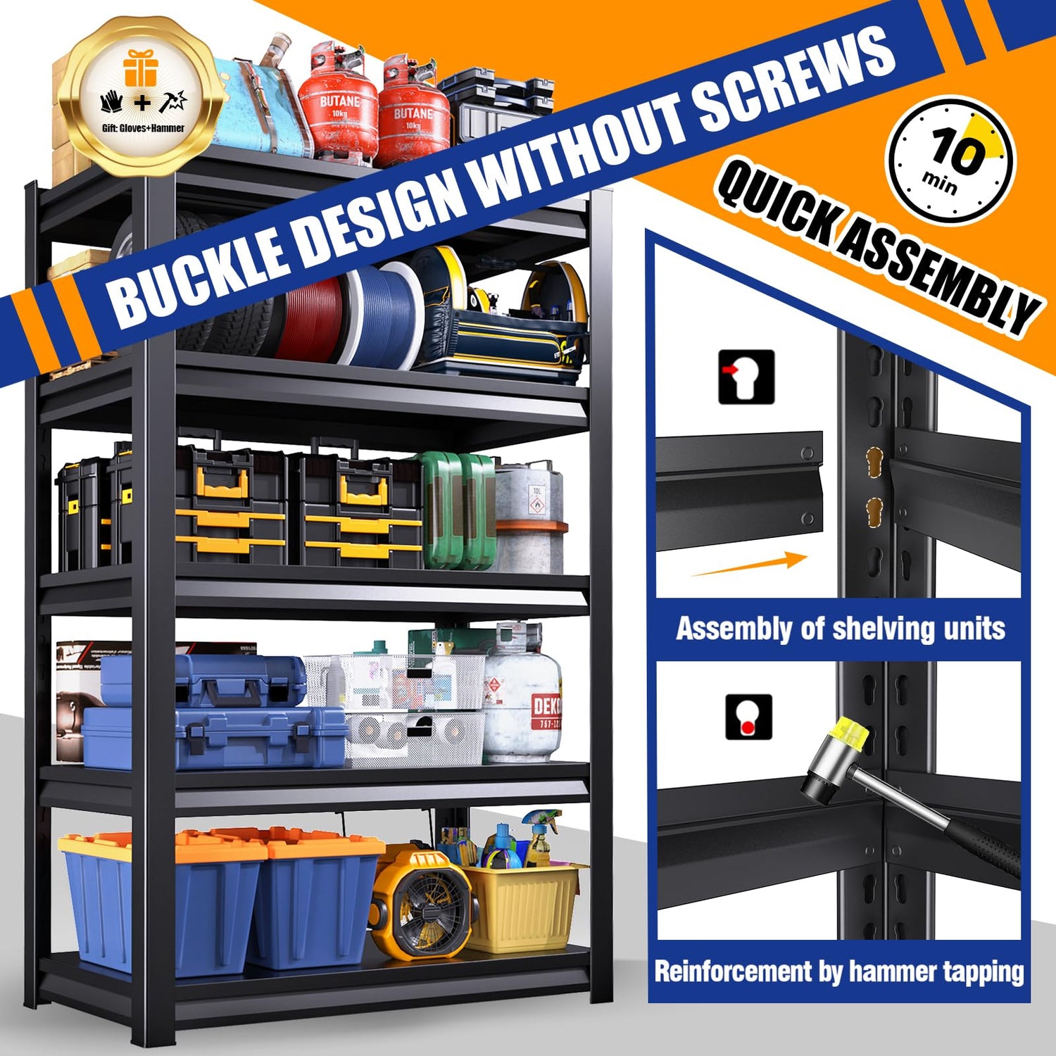 • Installing Storage Shelves in Seconds with Your Bare Hands:Our storage racks are designed with new clips, no more complicated screws! Comes with rubber mallet + non-slip gloves, 10 minutes to install without tools. Unbox in the morning, store at noon, and enjoy the sense of accomplishment of a tidy garage in the afternoon!