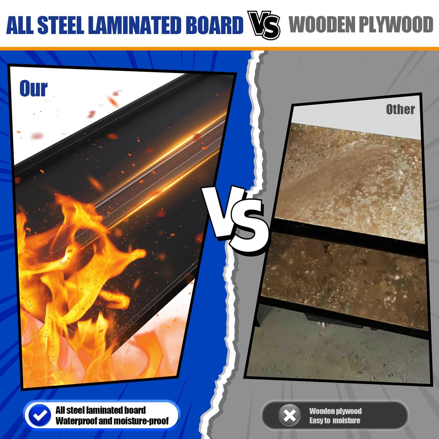 - Moisture-repellent and Rust-resistant Garage Shelves, A Wipe Is Clean:Say goodbye to wood panel warping! All-steel structure + exclusive anti-rust coating of the garage storage shelves, a wet cloth wipe stains all eliminated. Dampness in the basement? Garage oil spills? This metal shelving is as good as new for 10 years, so you can clean it with less effort.